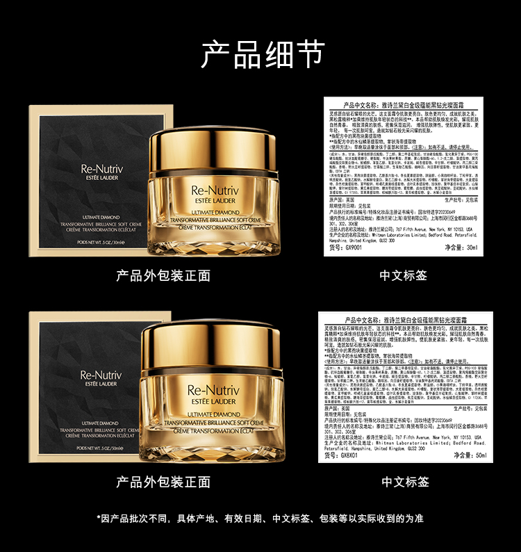 雅诗兰黛白金黑钻面霜紧致美白淡纹修护抗老抗皱50ml
