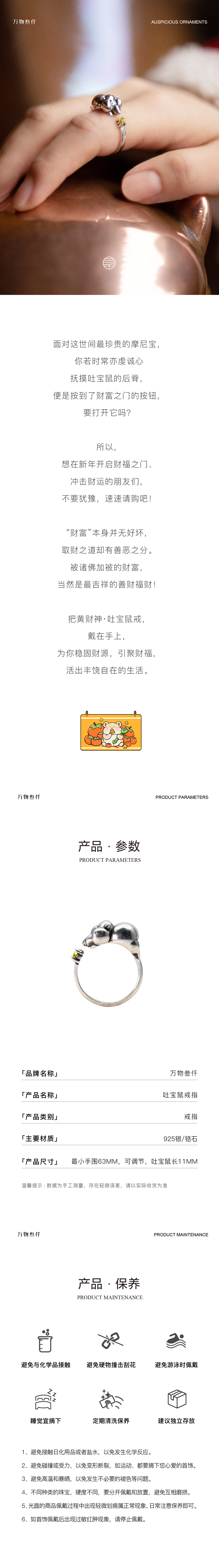 万物三千|招财吐宝鼠戒指 手饰 手串 饰品