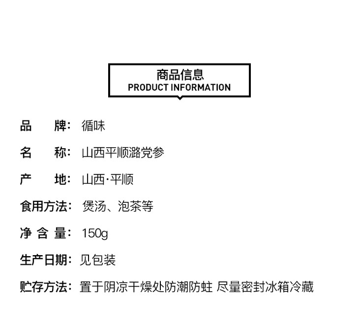 山西循味平顺潞党参150g礼盒装 党无硫椮路党参干货泡茶炖汤煲汤特产