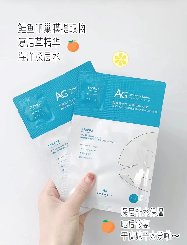 👑Cocochi抗糖胶原蛋白抗糖海洋保湿面膜 5片 👍暗沉粗糙肌“救星” 💦含有多种植物提取配方+复活草精华 👉有效:深层补水+锁水、缓解敏感、晒后修复 ✨带有小精华霜,先用面霜后敷面膜,吸收效果更佳 🌟铜氨纤维材质膜布,亲肤又透气,还有淡淡香味噢~ #蓝色:补水修复保湿