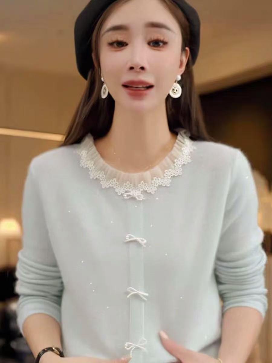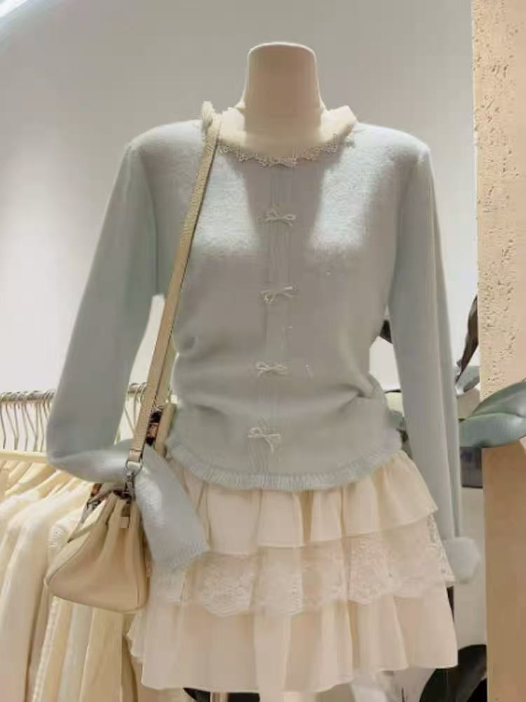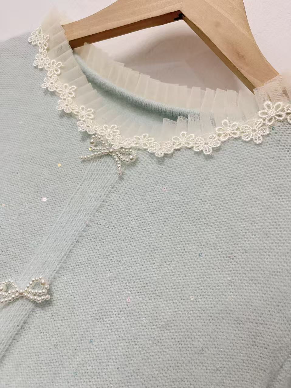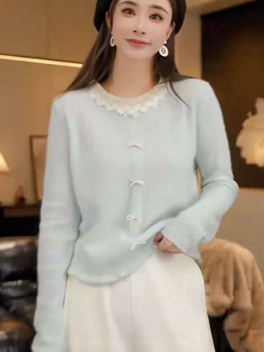 【孤品捡漏】G183 样衣微脏(羊毛)小清新浅蓝蝴蝶扣毛衣-喜出