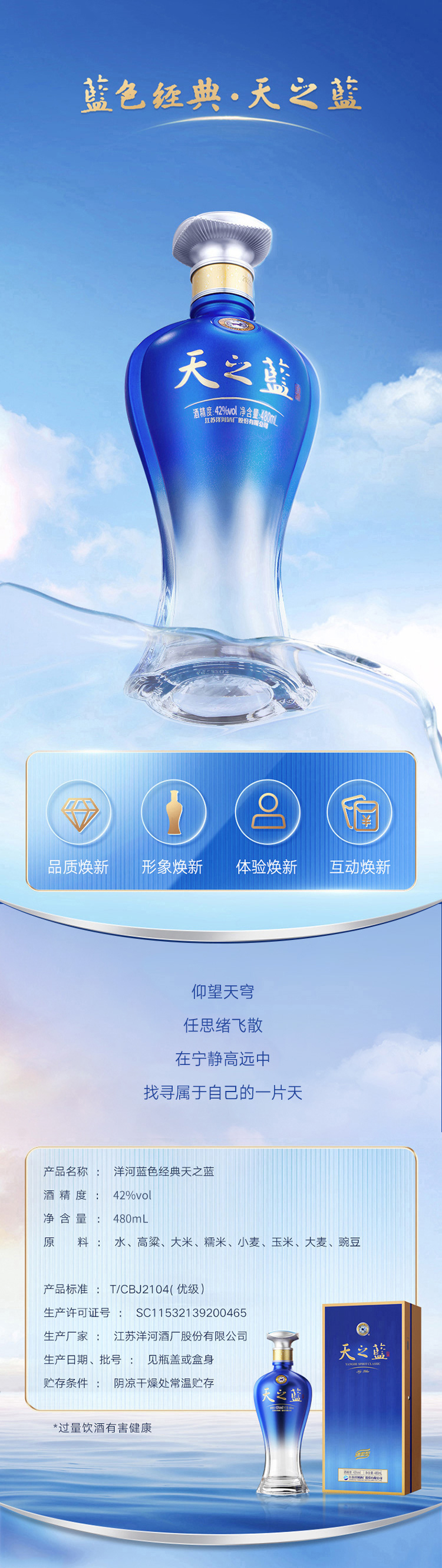 洋河 天之蓝 21版本 42度 480mL 浓香型白酒