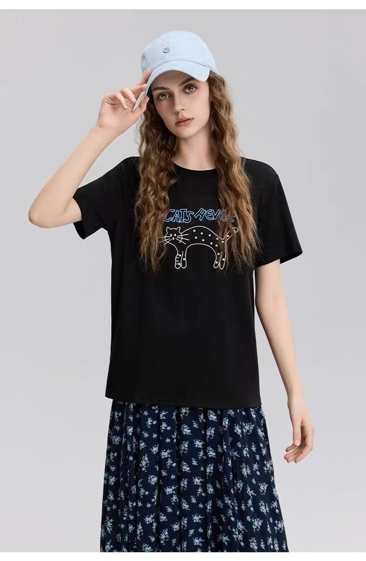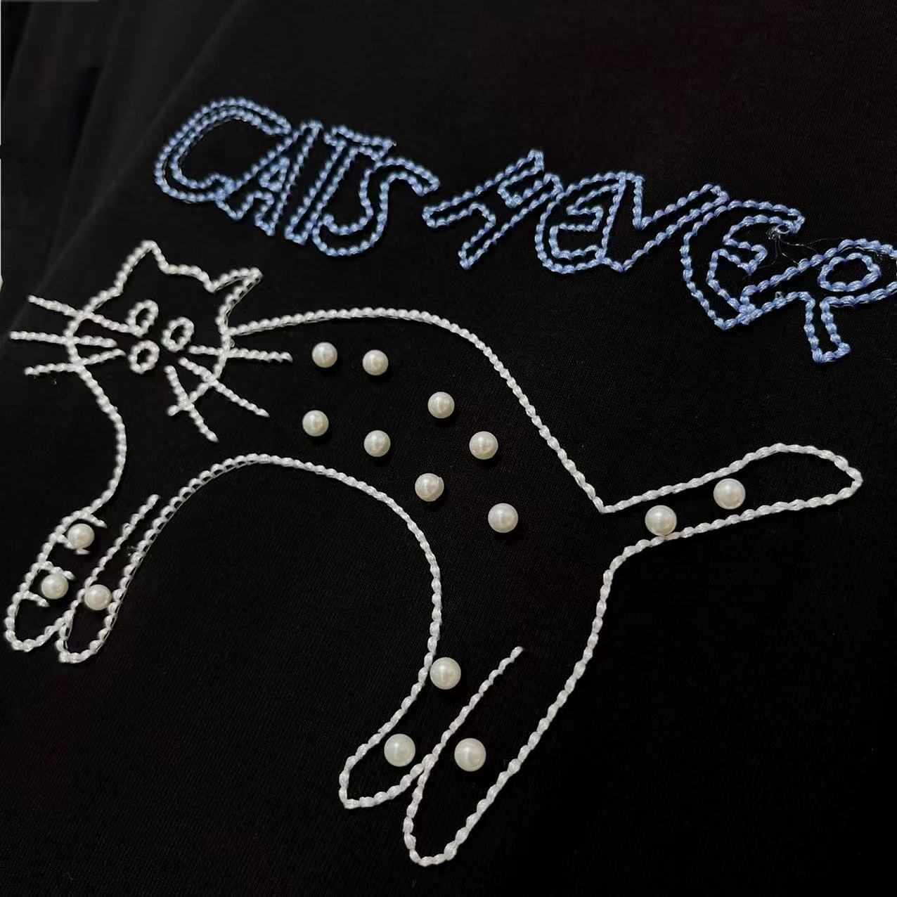 【新品特卖】25064重工刺绣工艺猫咪短袖T恤-喜出