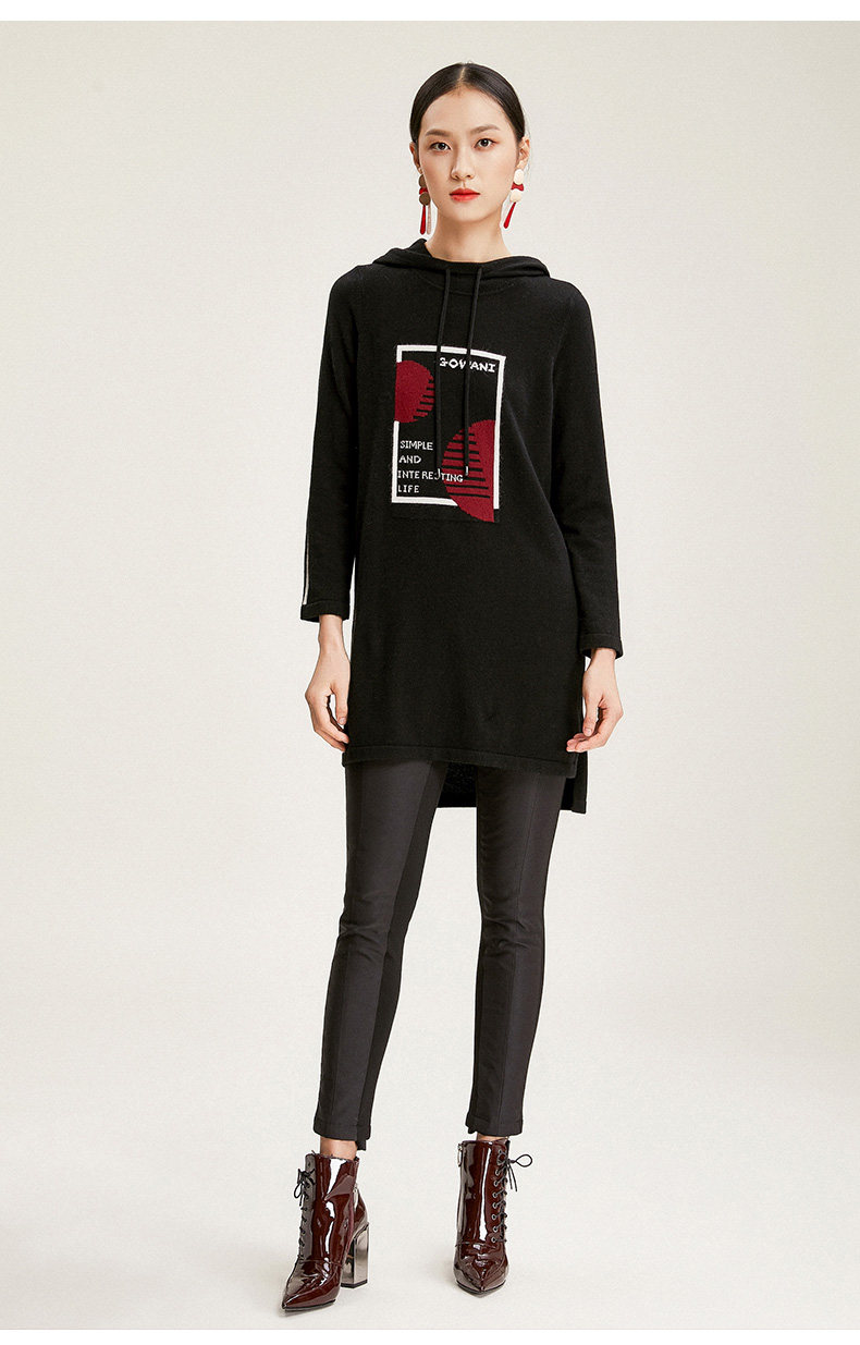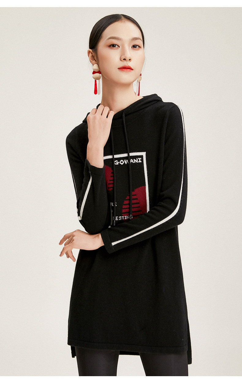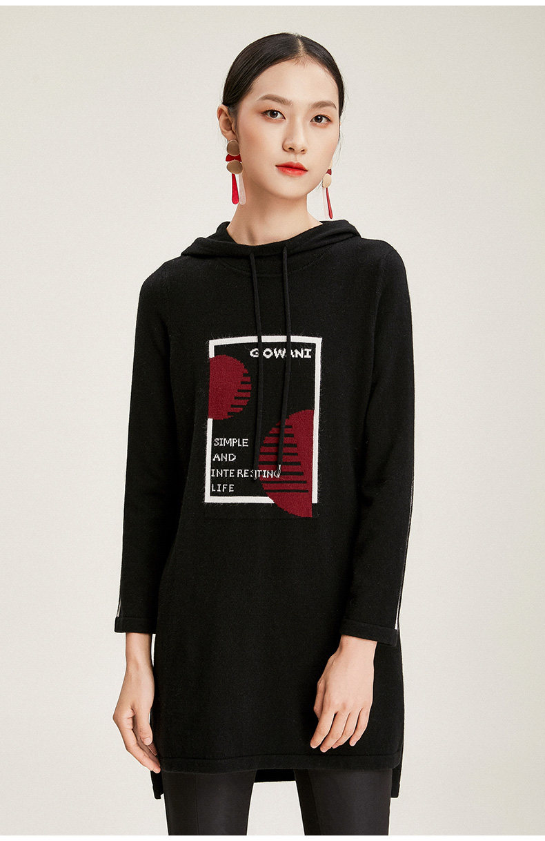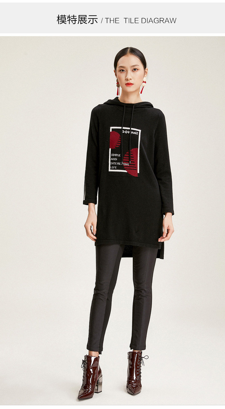 乔万尼套头毛衫针织打底衫女秋冬长袖连帽上衣中长款EN4M813
