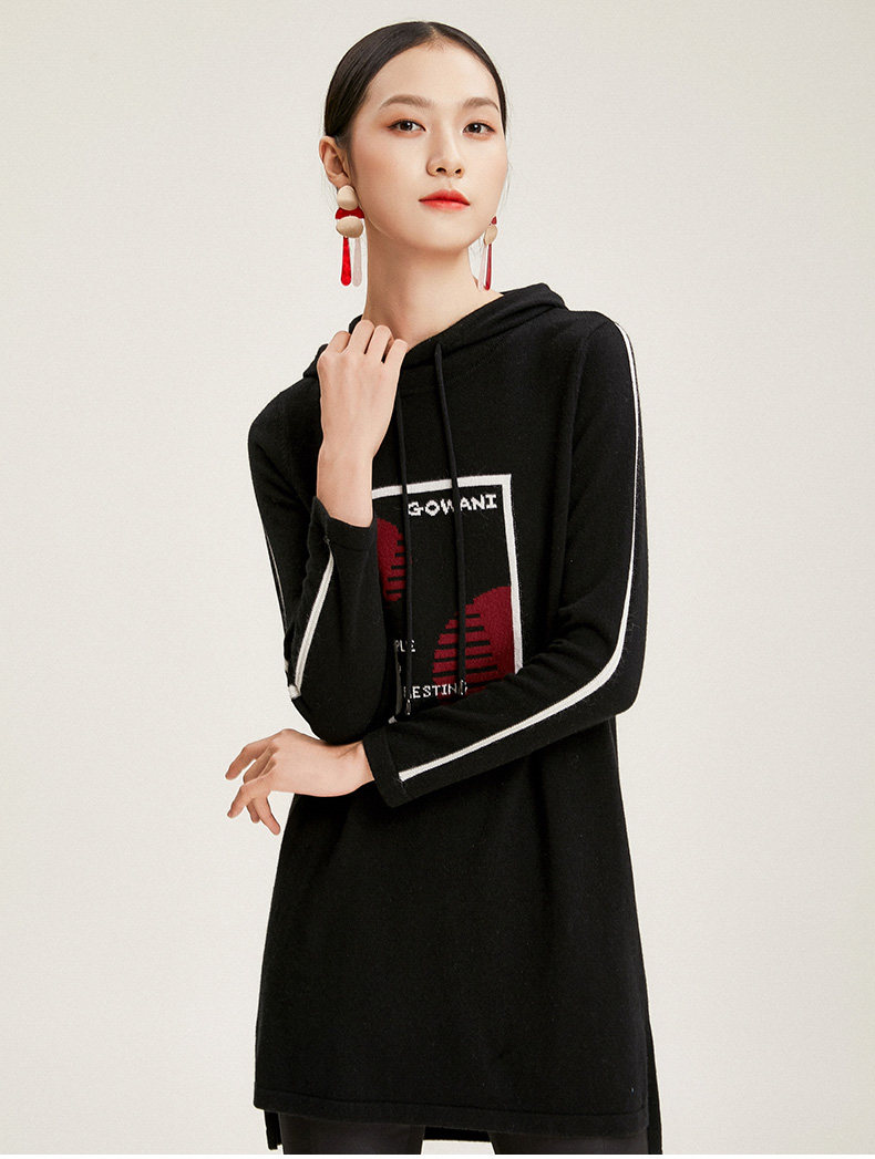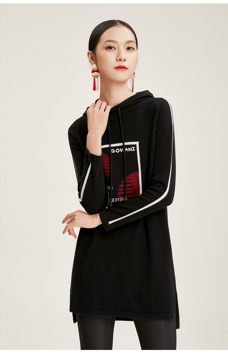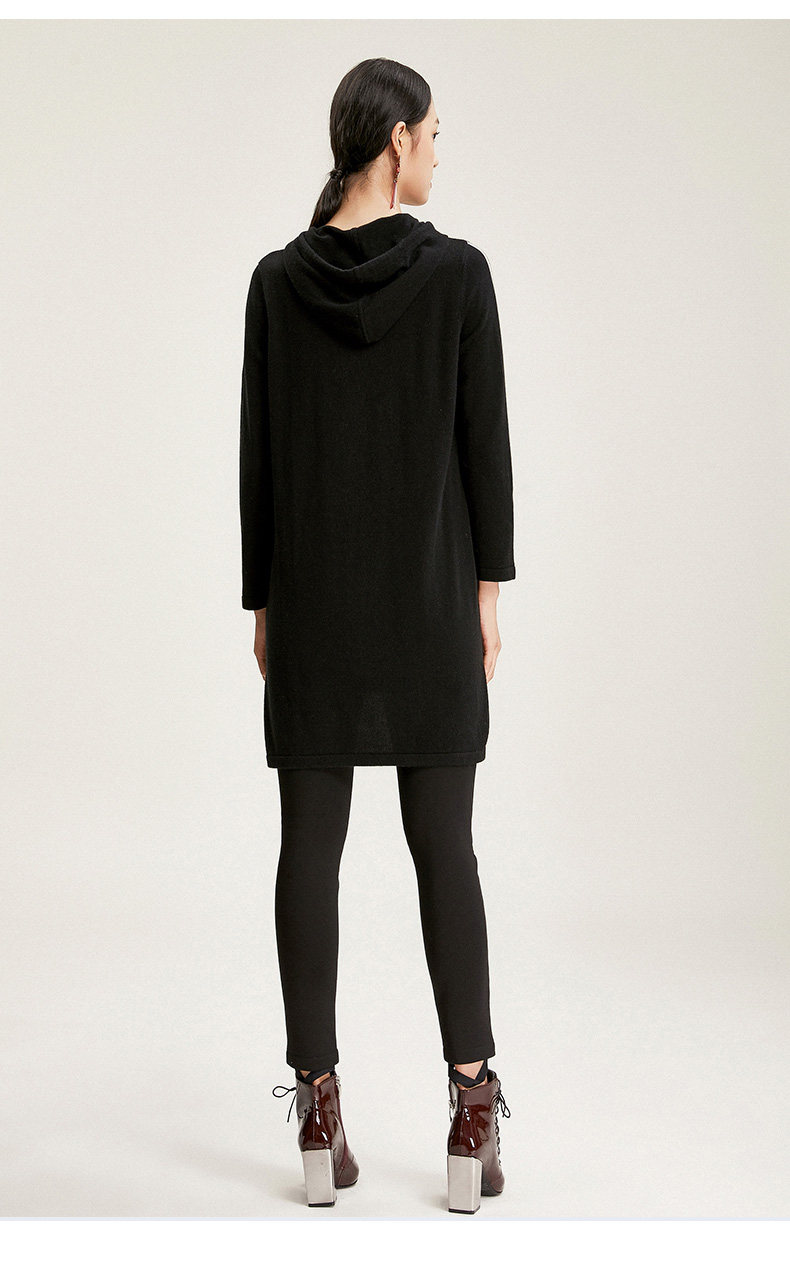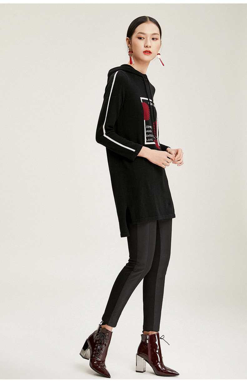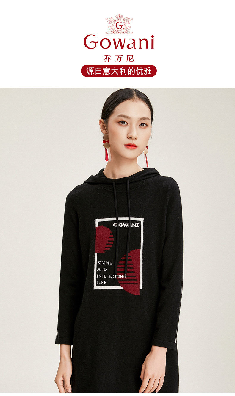 乔万尼套头毛衫针织打底衫女秋冬长袖连帽上衣中长款EN4M813