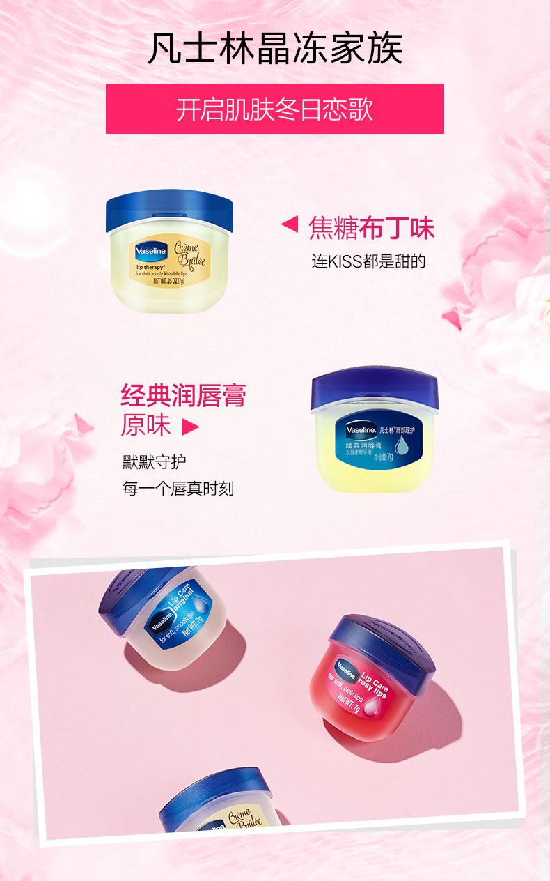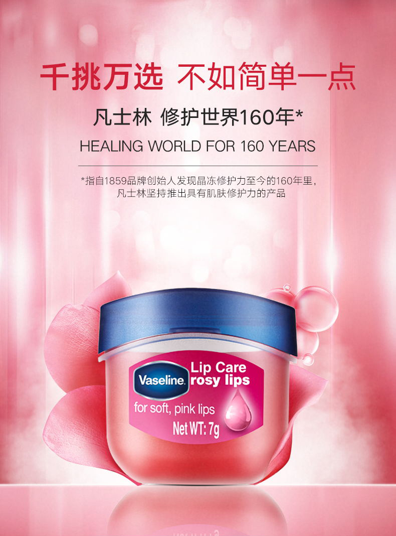 【特惠】美国凡士林Vaseline经典修护保湿润唇膏(玫瑰花蕾味)7g