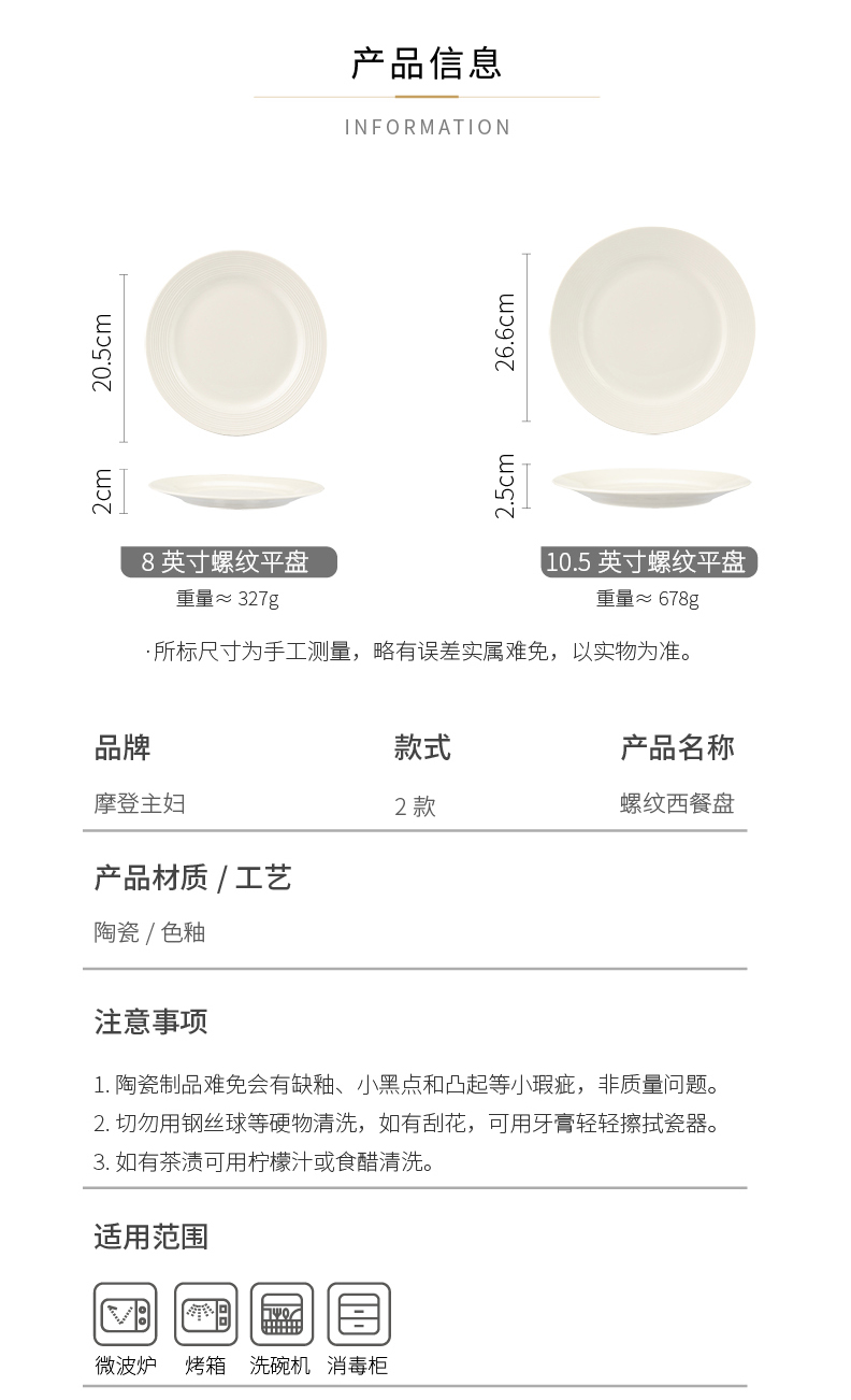 摩登主妇西餐盘家用陶瓷盘子高级感意面盘早餐碟子平盘菜盘牛排盘