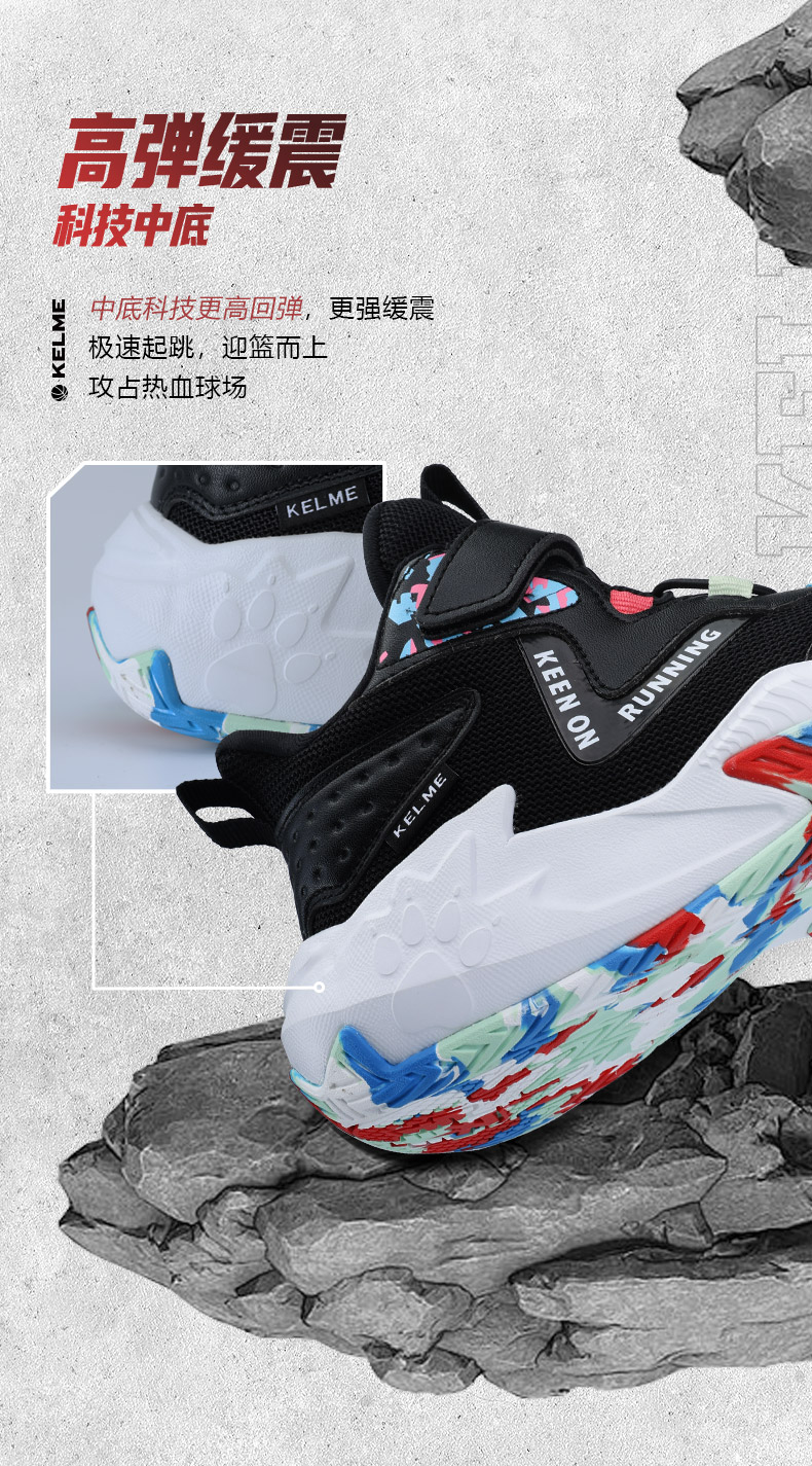 KELME卡尔美2023新款锋猁专业儿童篮球鞋男童