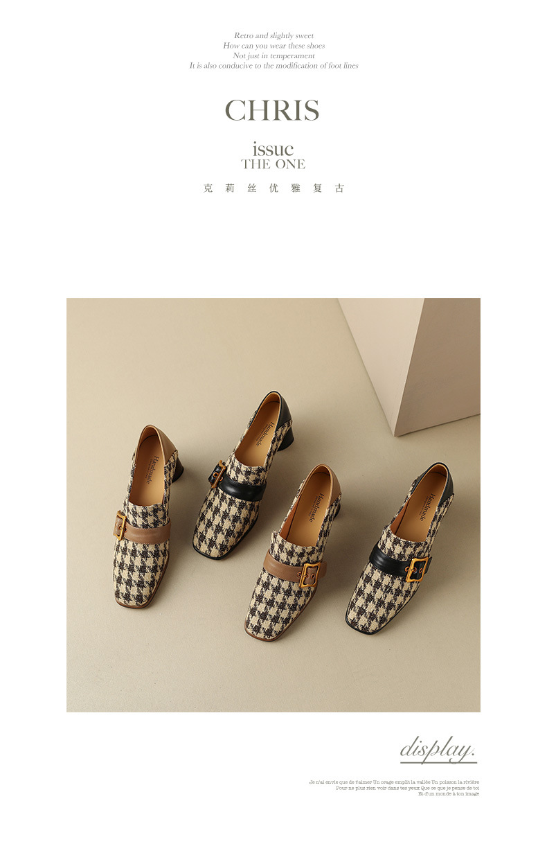 【预售5天】5cm加绒厚底小皮鞋大码粗跟乐福鞋高跟保暖单鞋ASZ-KL766R