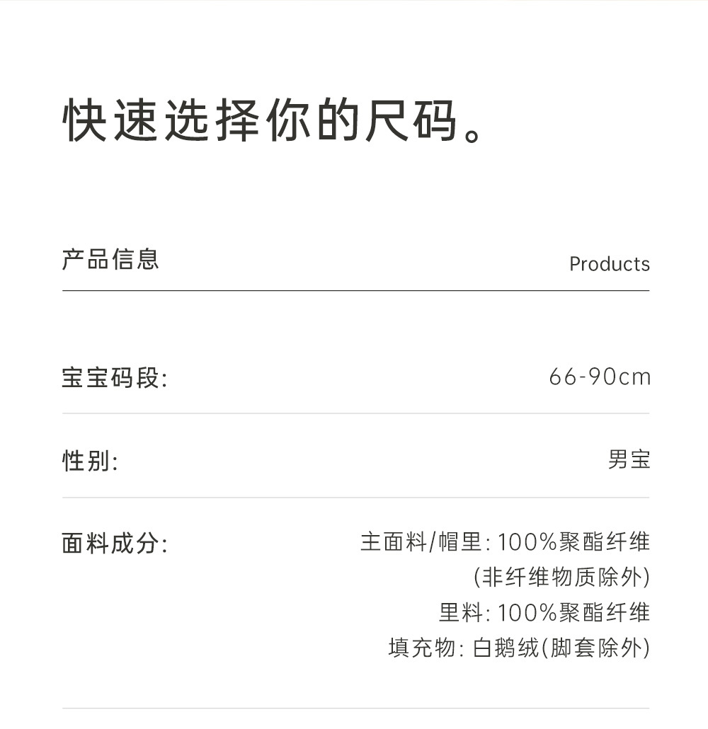 【商场同款】英氏儿童羽绒服秋冬加厚保暖防湿羽绒连体衣男童外出超韧绒