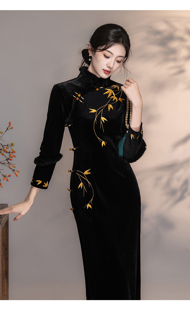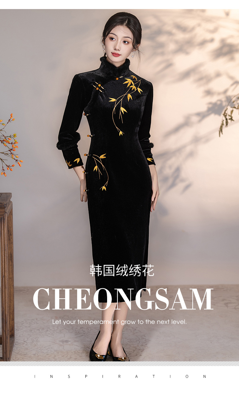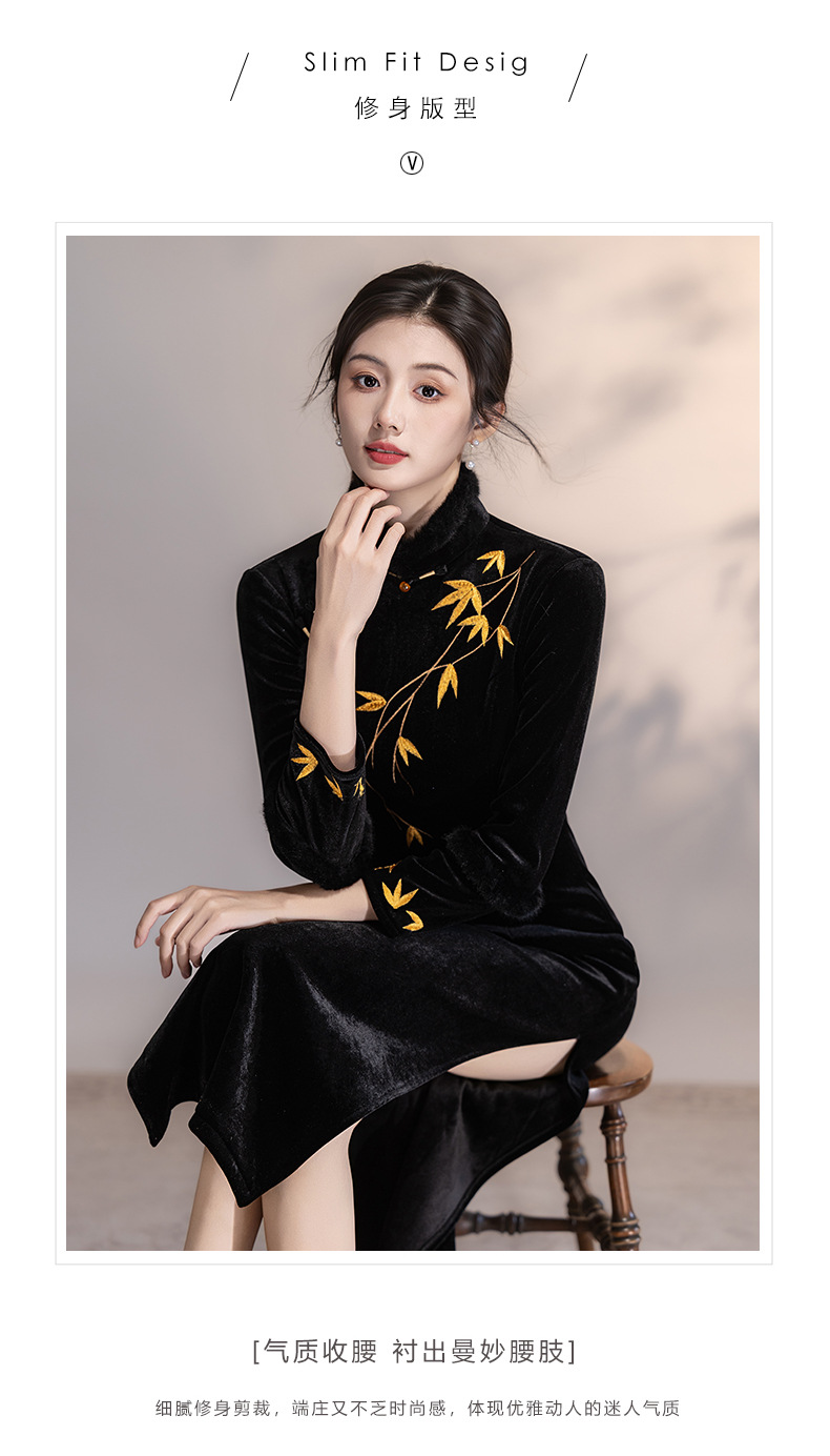 LSB 4164加绒加厚改良新中式国风连衣裙 商品图3