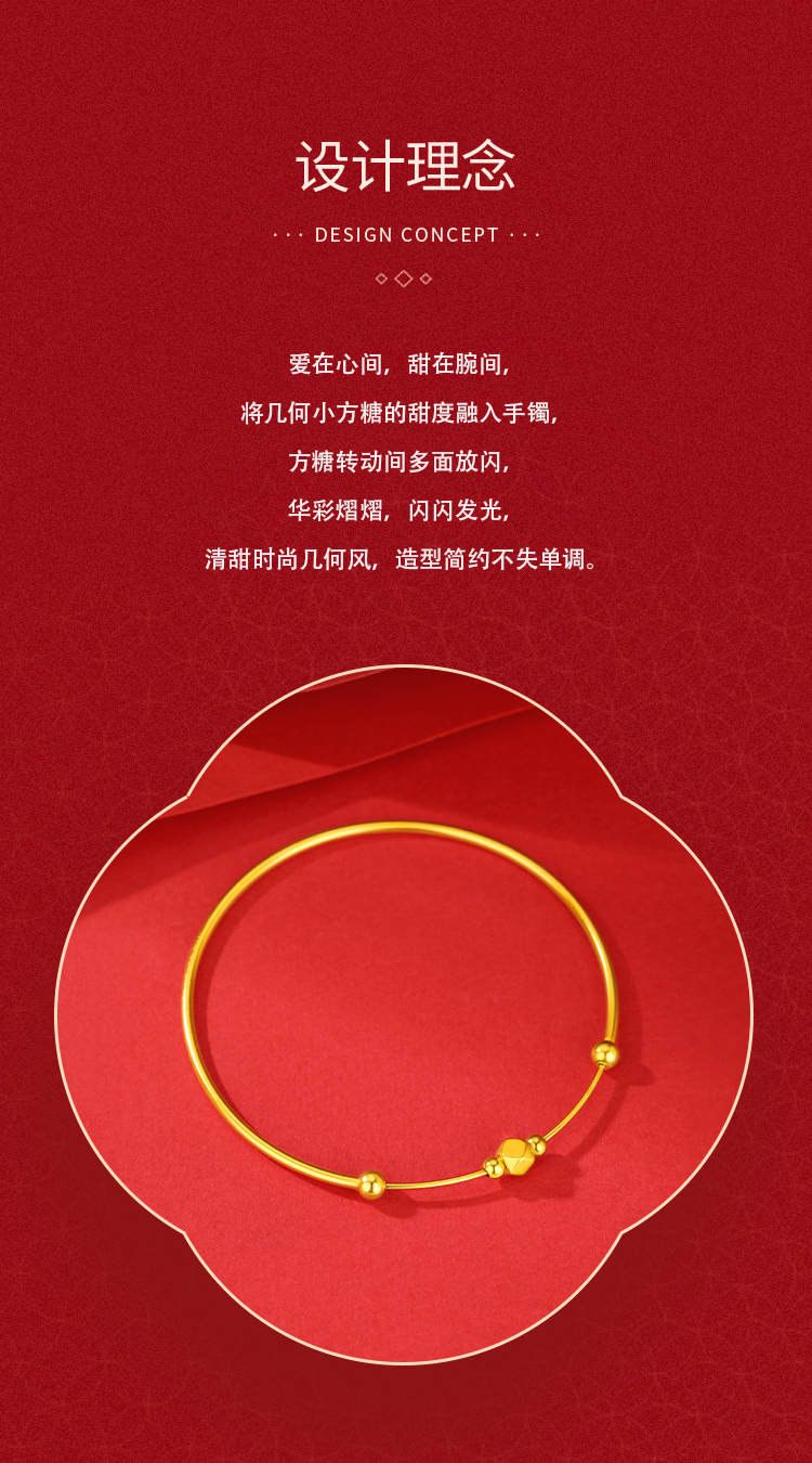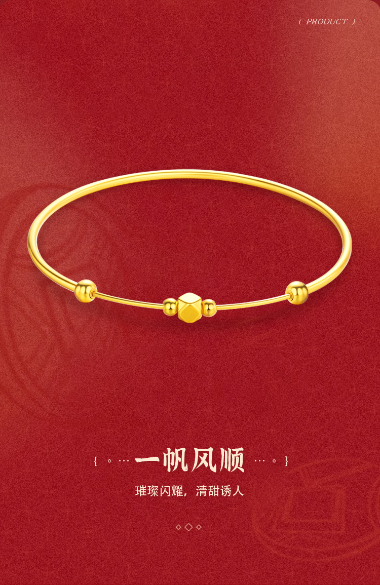 金六福吉祥足金一帆风顺手镯
