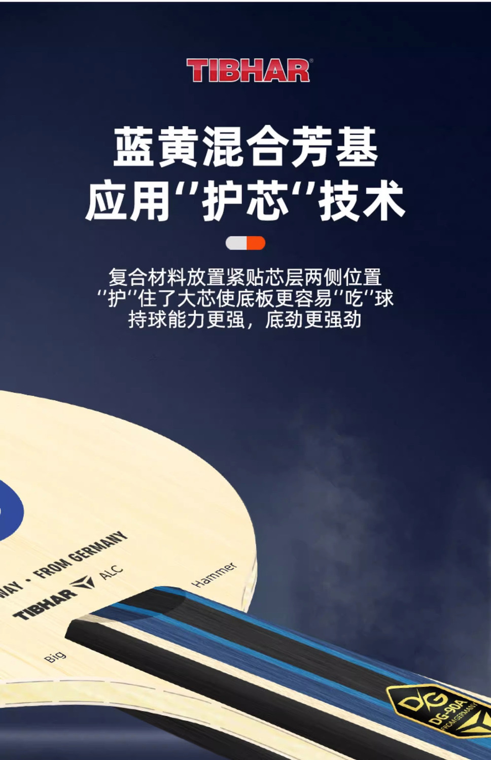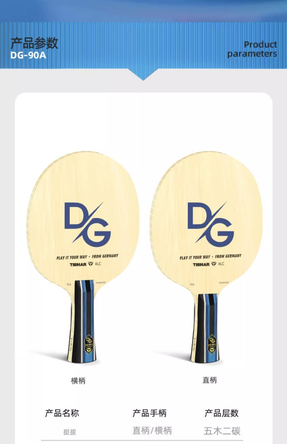 TIBHAR挺拔乒乓球底板DG-90A系列碳素/纯木球拍横直球拍专业级底板