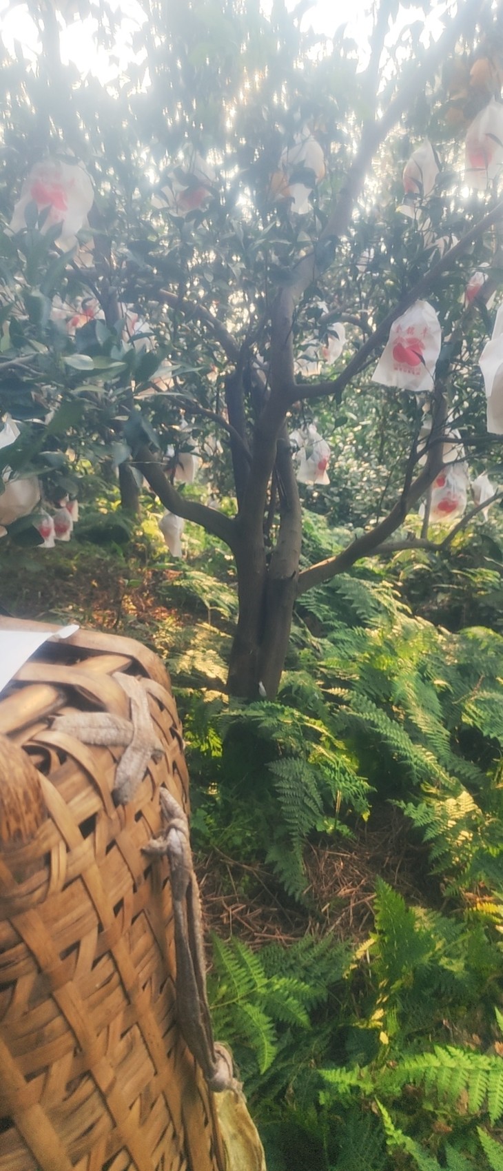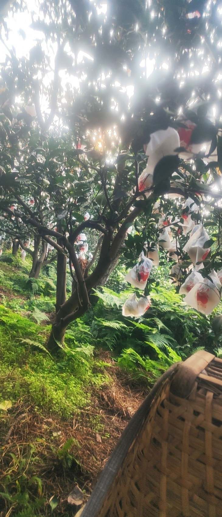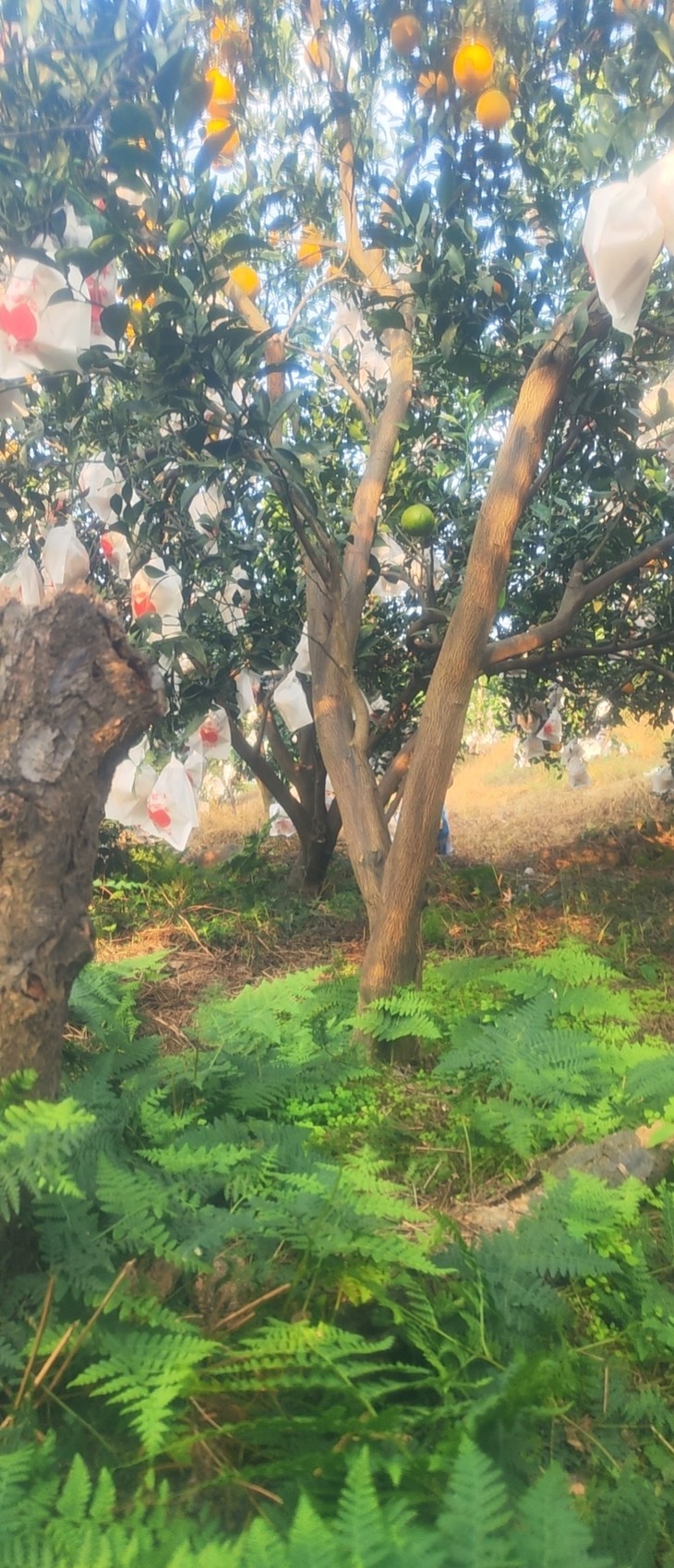 果园位于山区的丘陵地,四周环山,环境优美。果树从父辈开始就种下去了,树龄已经有十几年,大都高大两米多。后来嫁接了品种,主要种植了爱媛橙、耙耙柑和不知火、甘平、明日见等柑橘类的品种。