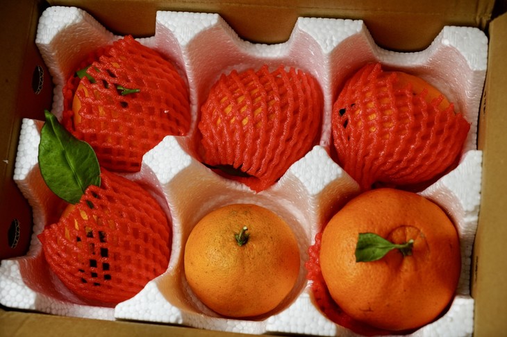 明日见:甜春橘柚和春见粑粑柑杂交培育出的新型柑橘品种。明日见柑橘皮薄肉厚、外观光滑、果肉细腻、糖分高。