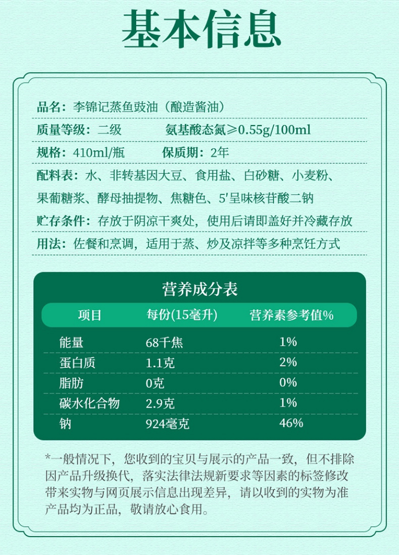 李锦记蒸鱼豉油/1瓶(410ml)生产日期:25年7月补单专用