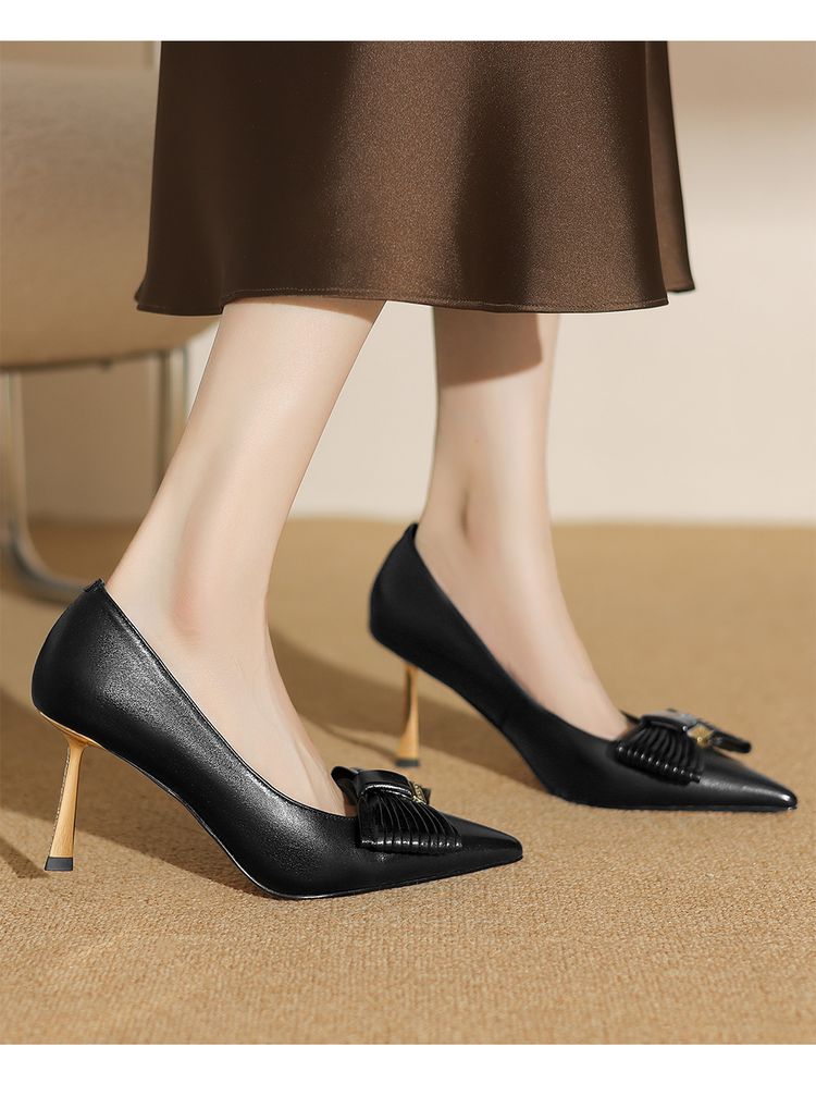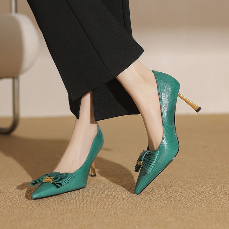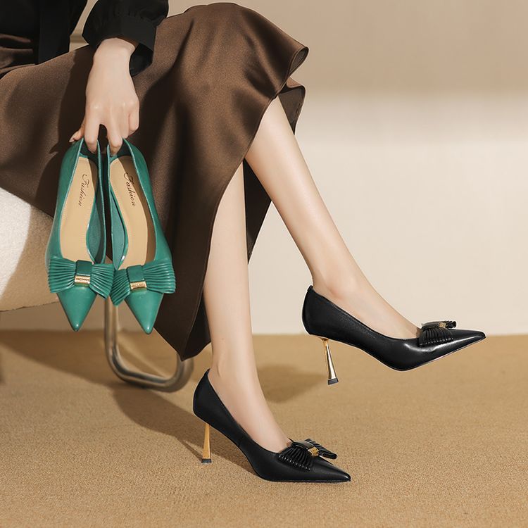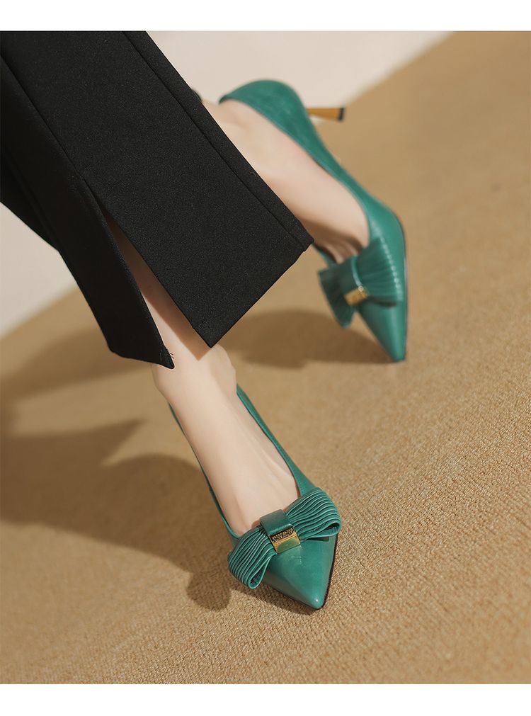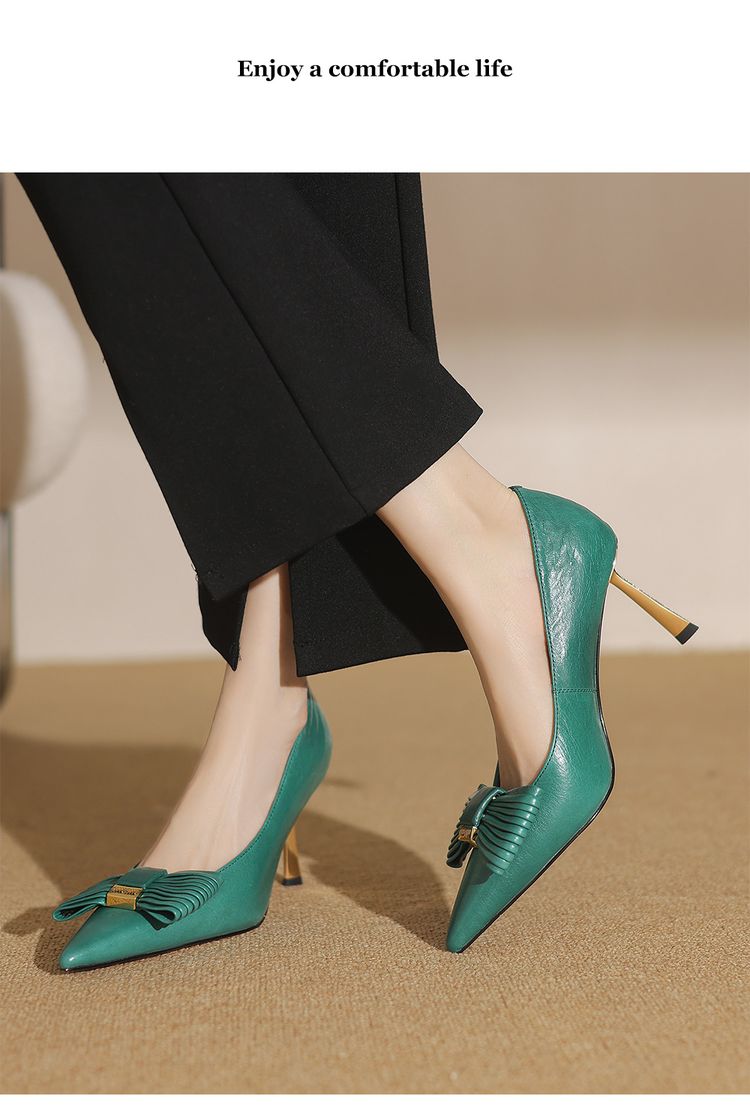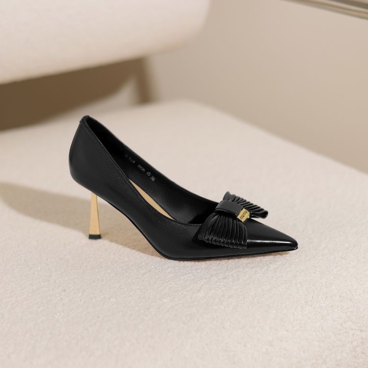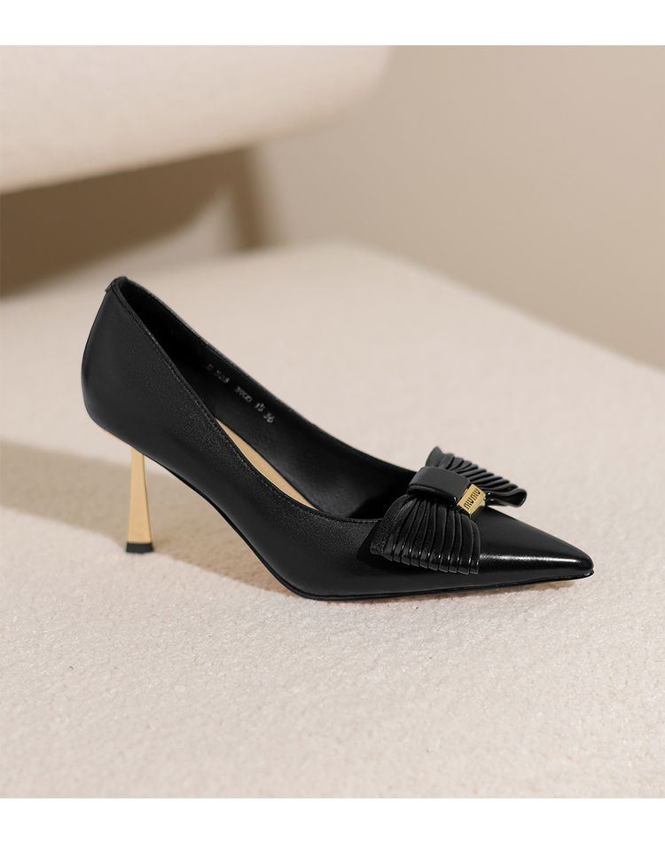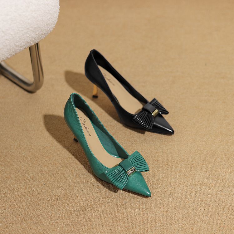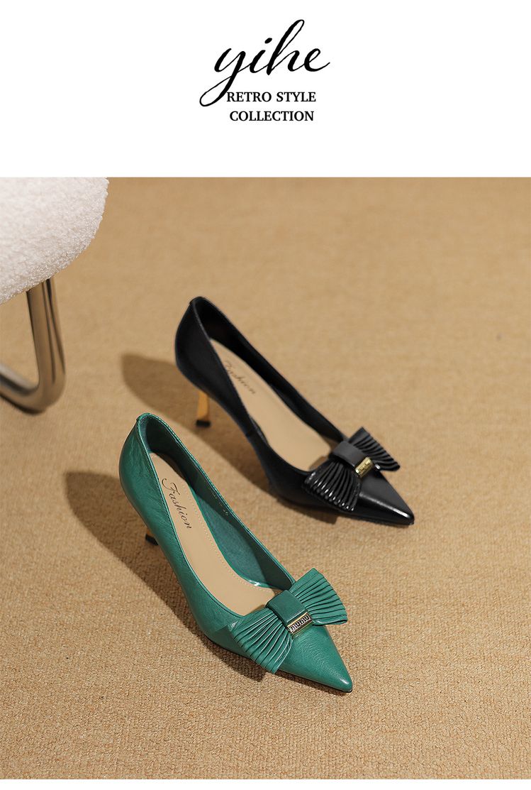【预售5天】法式复古通勤蝴蝶结细高跟鞋女时尚尖头浅口单鞋YS&3900
