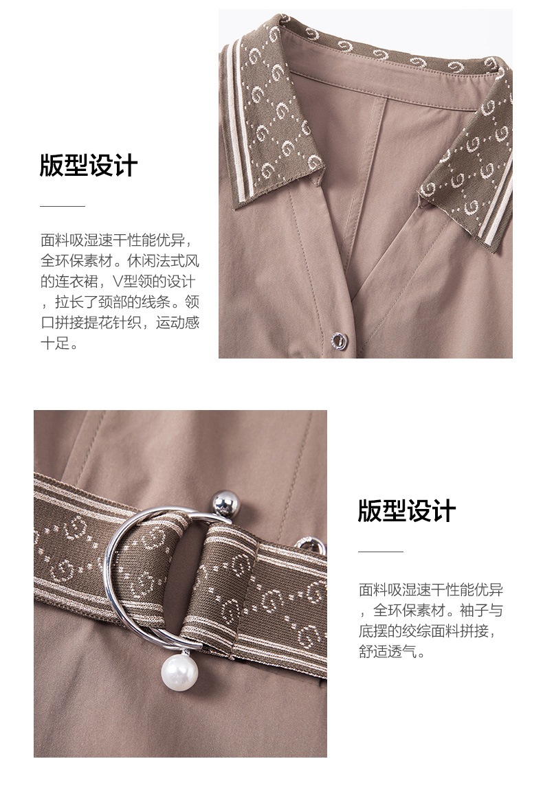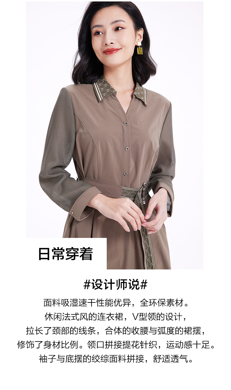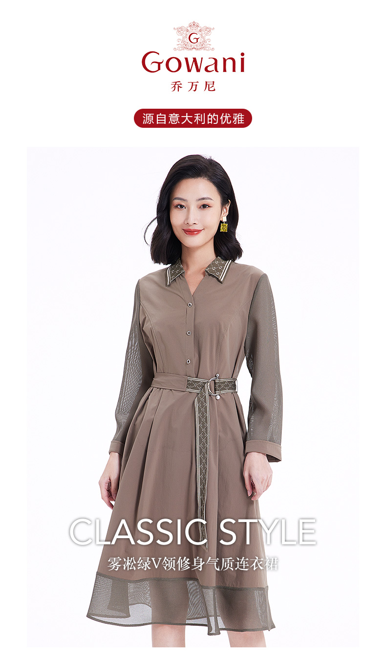 乔万尼早春新款气质连衣裙法式V领收腰长袖春季EF3E899