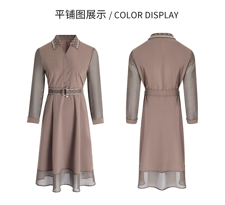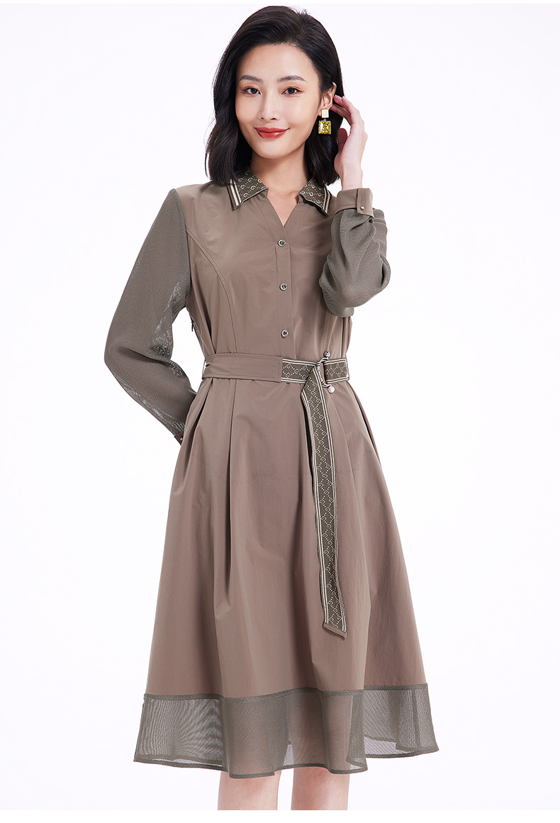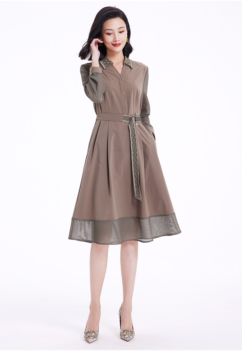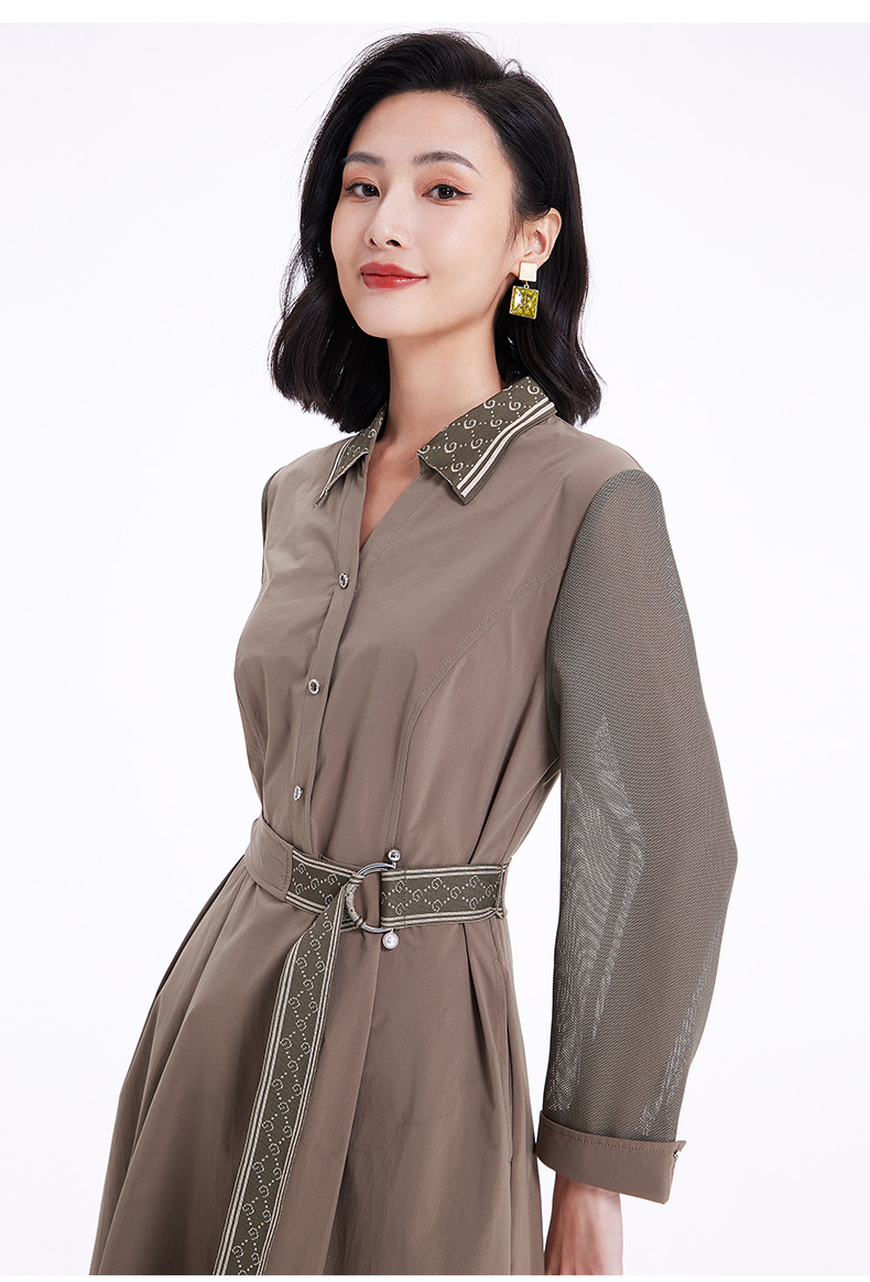 乔万尼早春新款气质连衣裙法式V领收腰长袖春季EF3E899