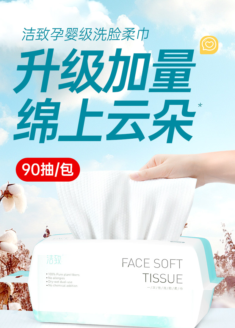 洁致抽挂两用一次性绵柔洗脸巾90抽