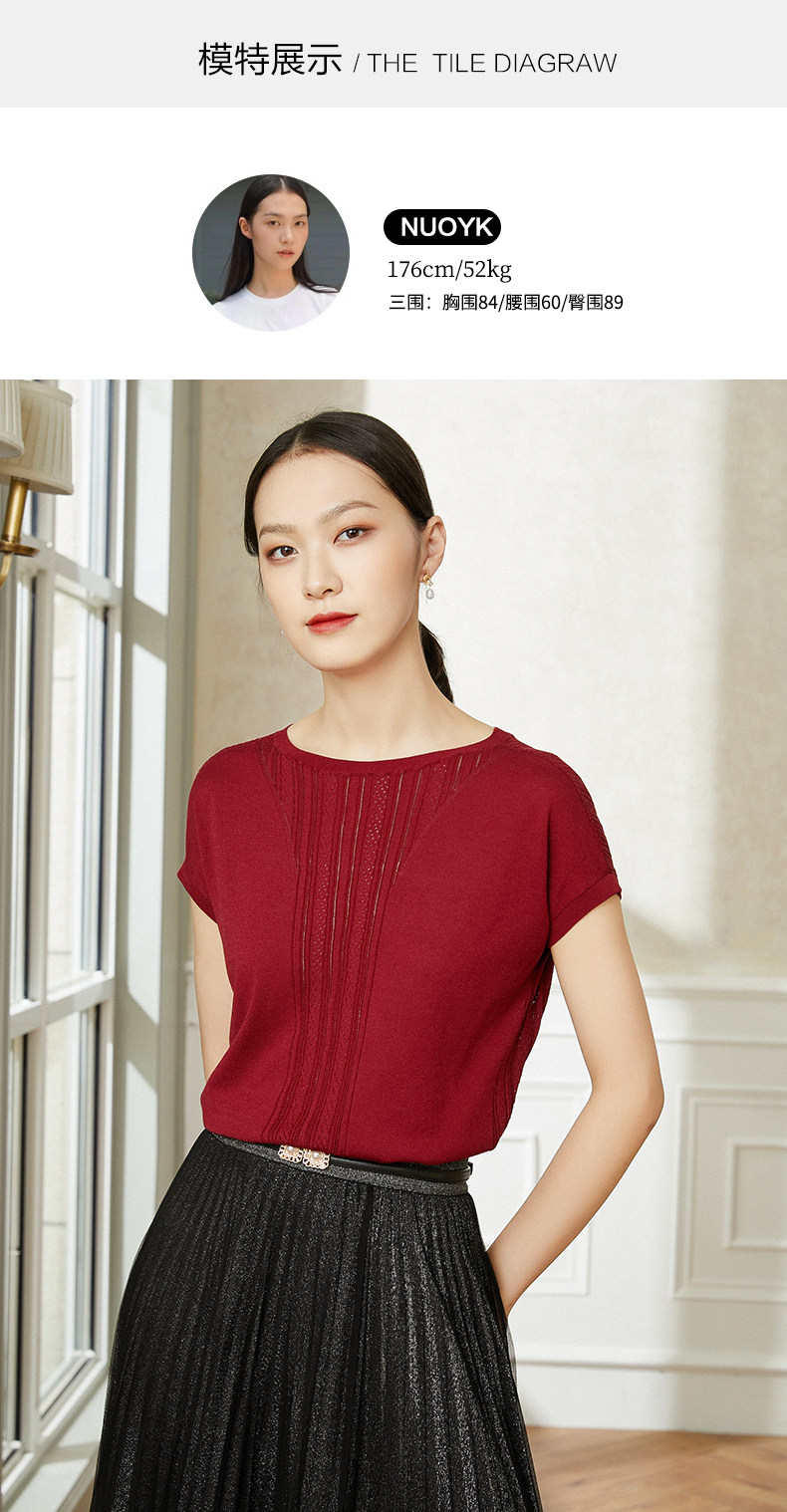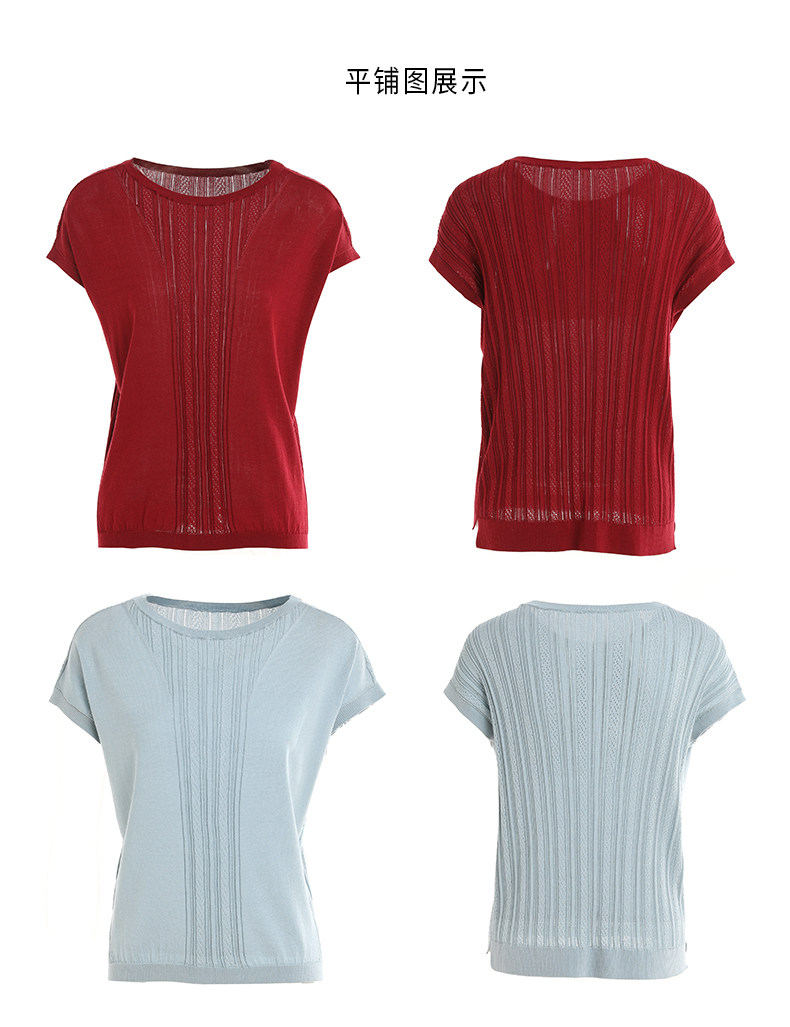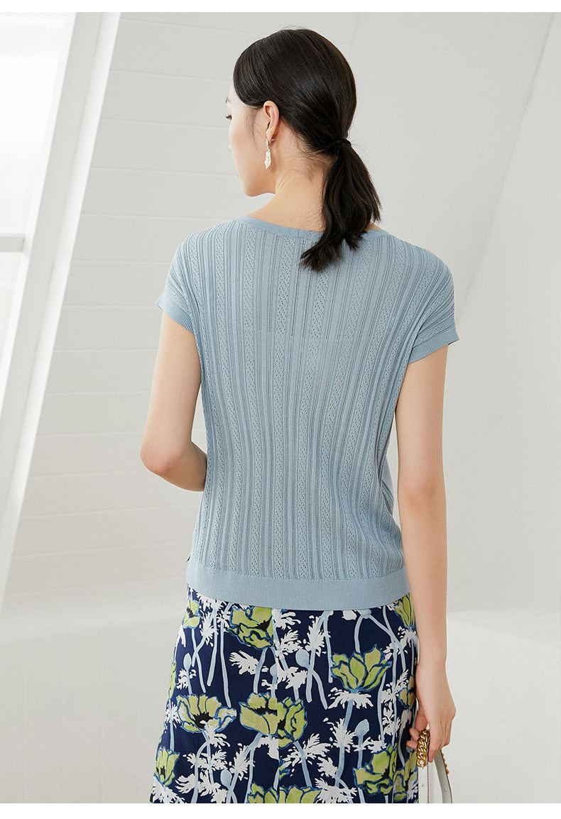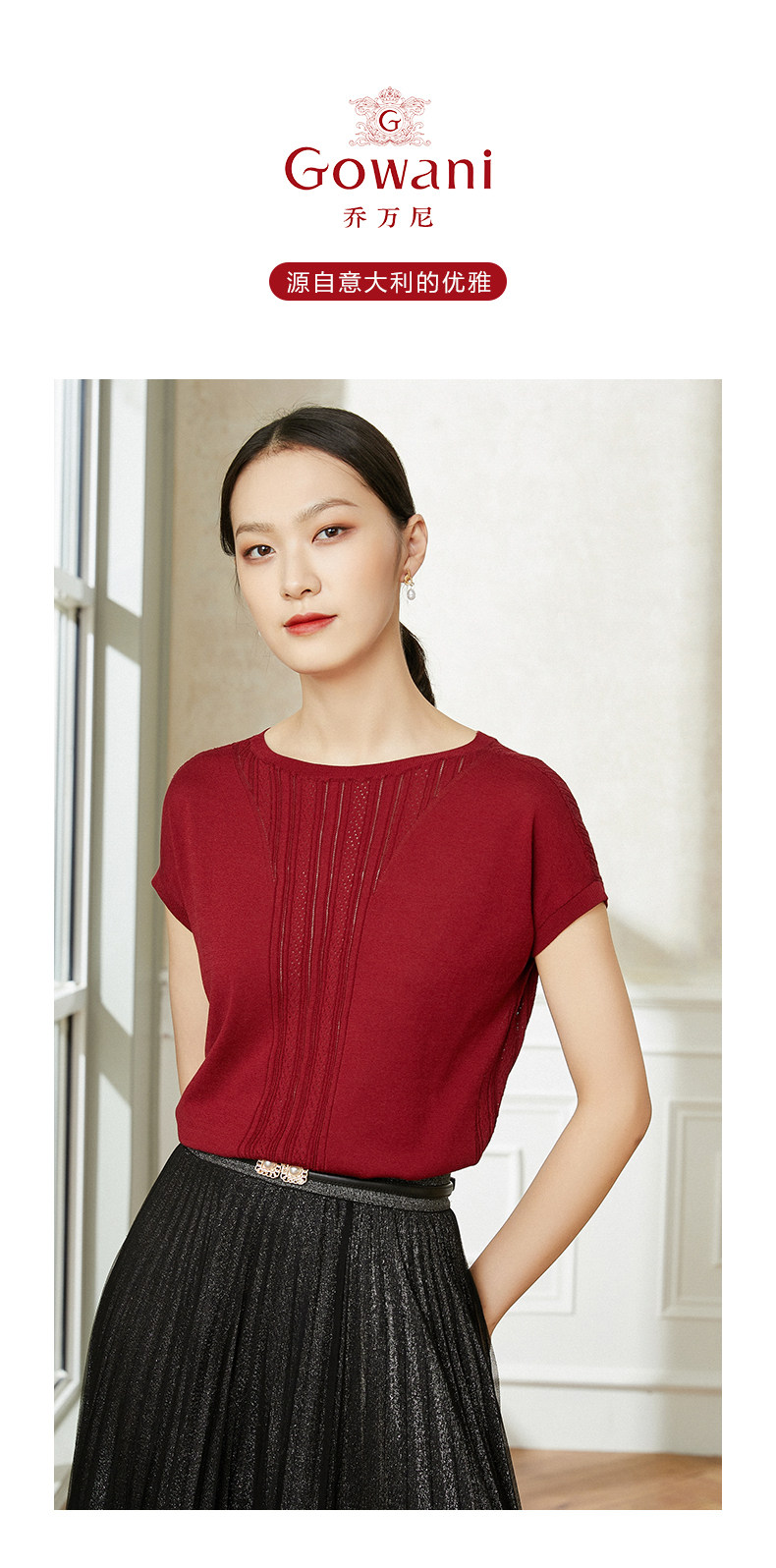 【两色可选】乔万尼薄款女冰丝v领短款宽松上衣女设计感早春宽松短袖针织衫女EI1M943