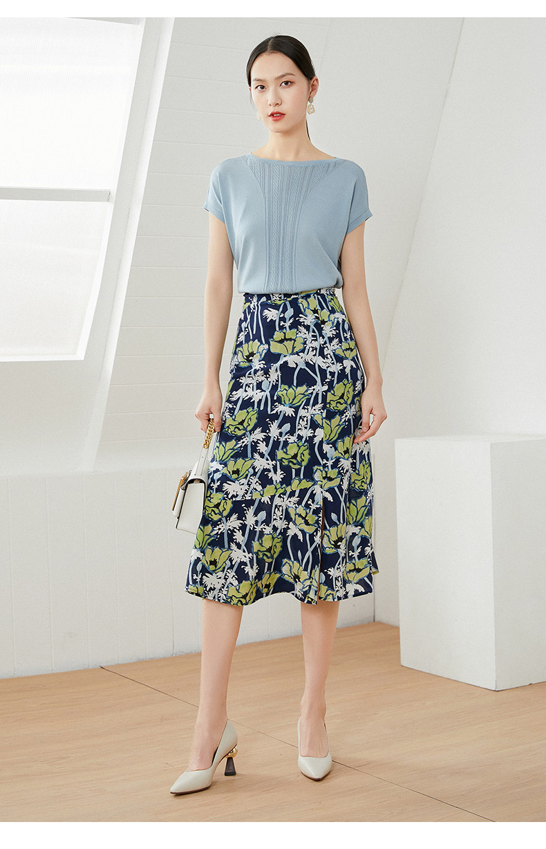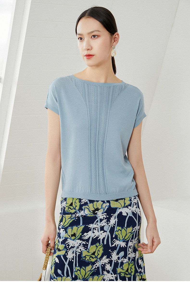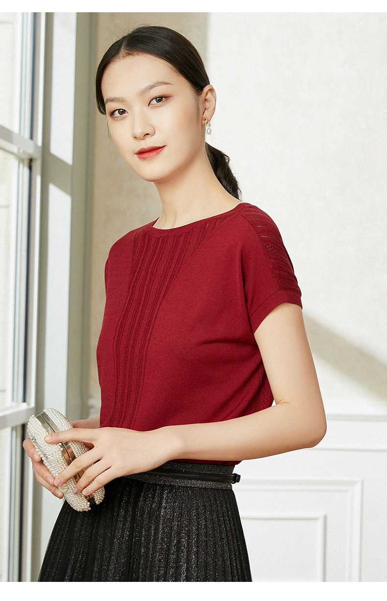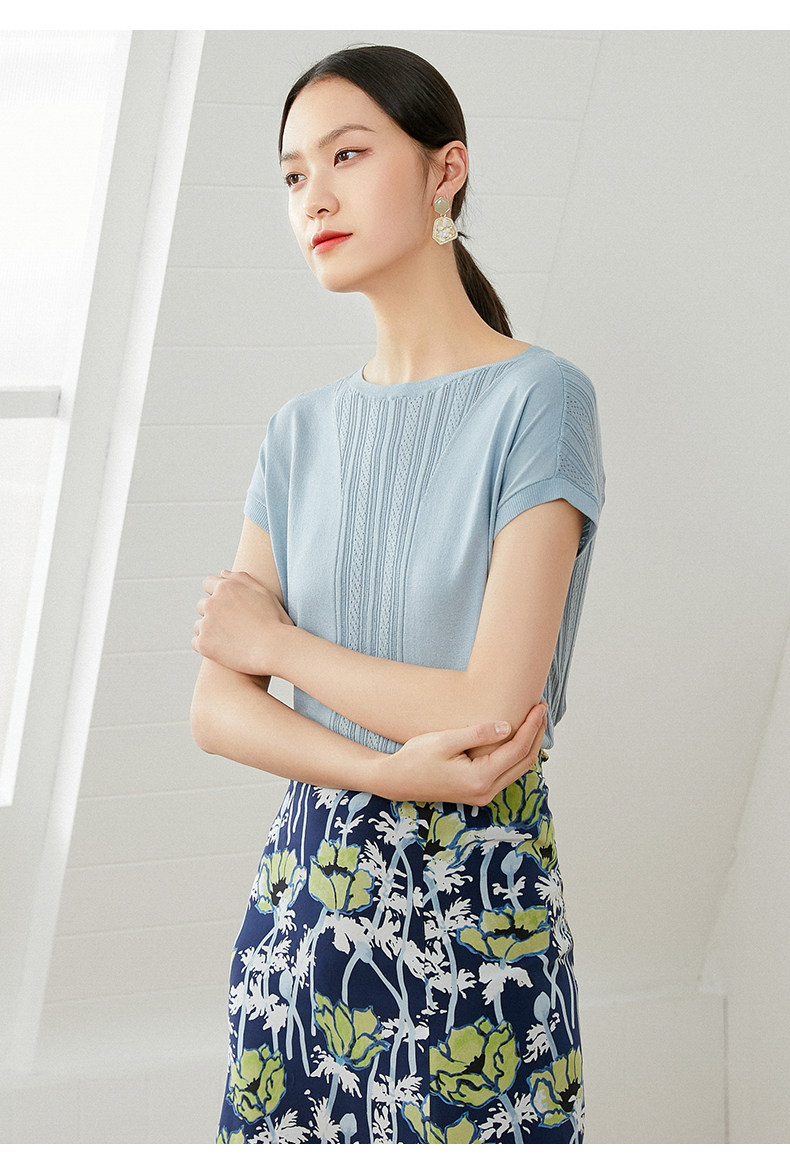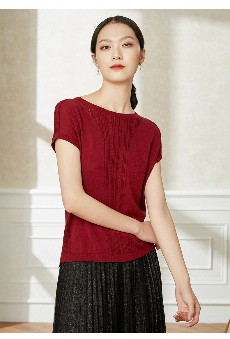 【两色可选】乔万尼薄款女冰丝v领短款宽松上衣女设计感早春宽松短袖针织衫女EI1M943