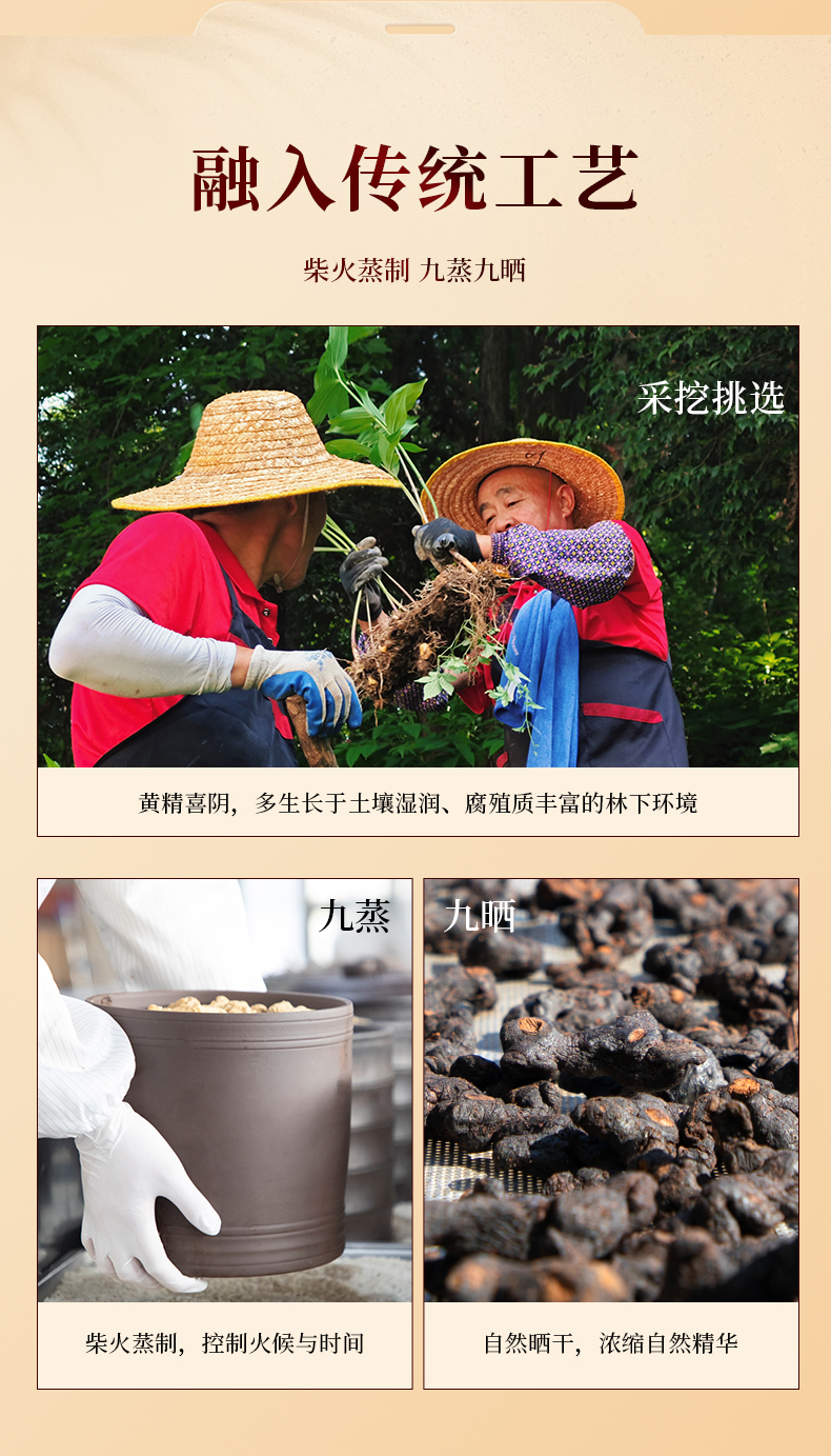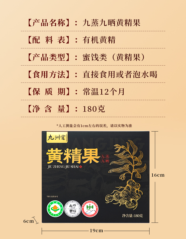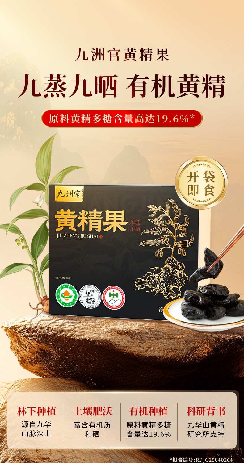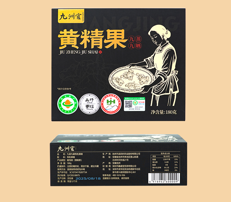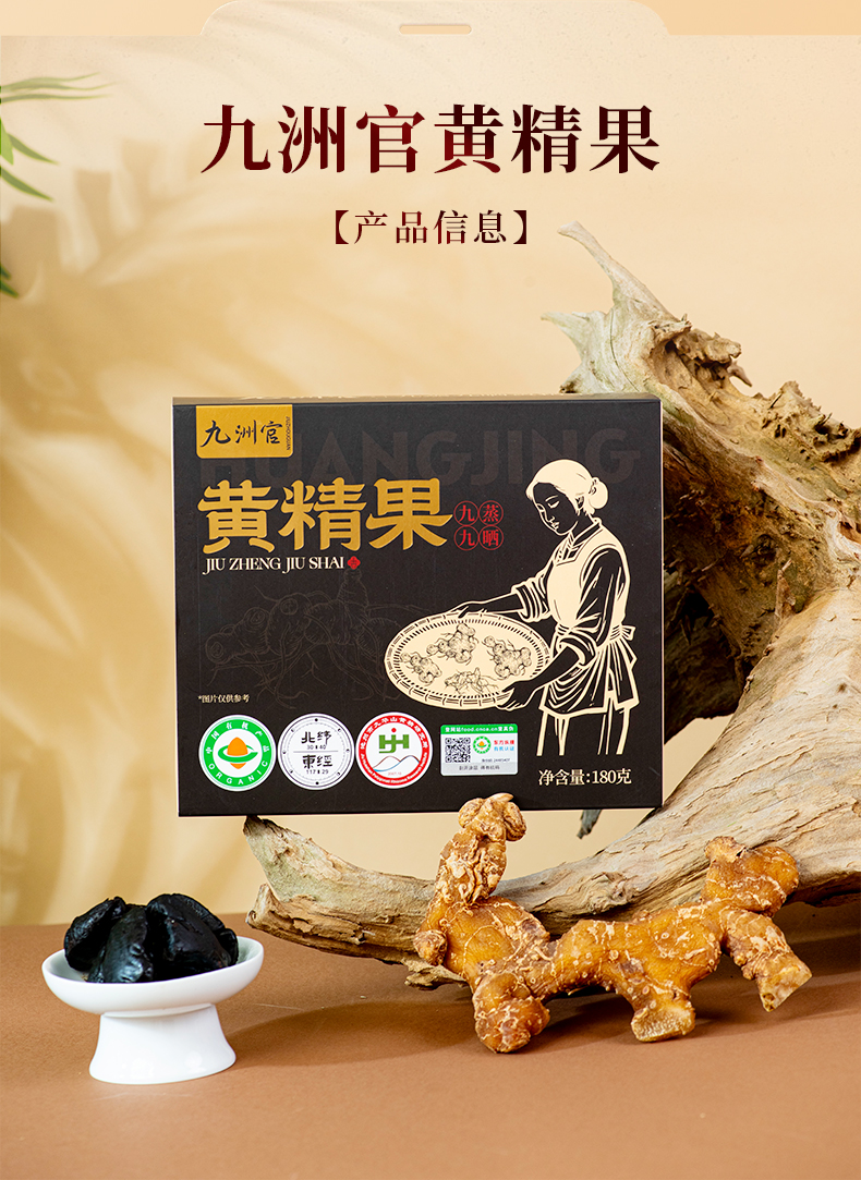 安徽九华山【九蒸九晒有机黄精果】180g/盒 8~10年 有机多花黄精