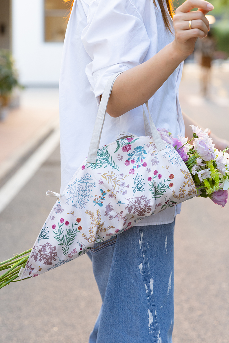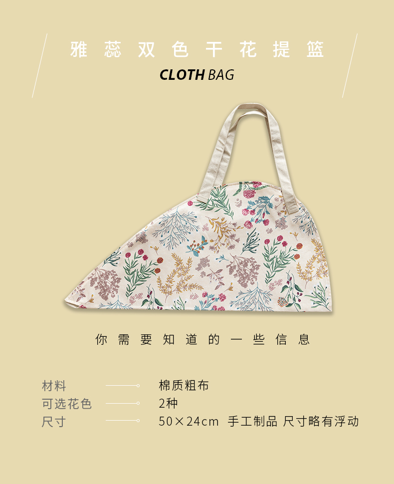 雅蕊双色花篮干花提篮布艺花袋三色棉质粗布手提篮单件挎包高级感