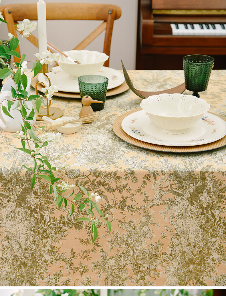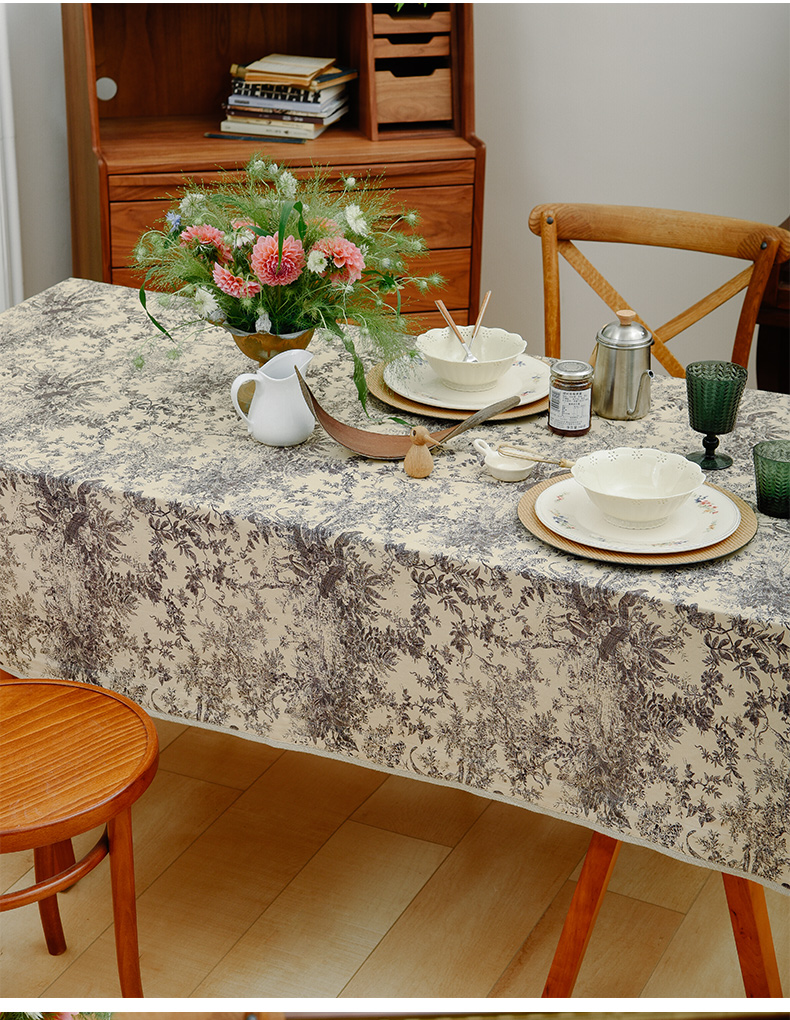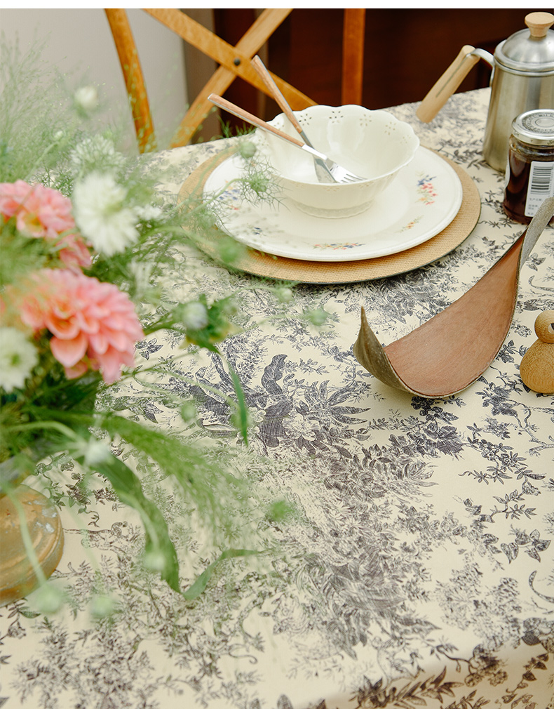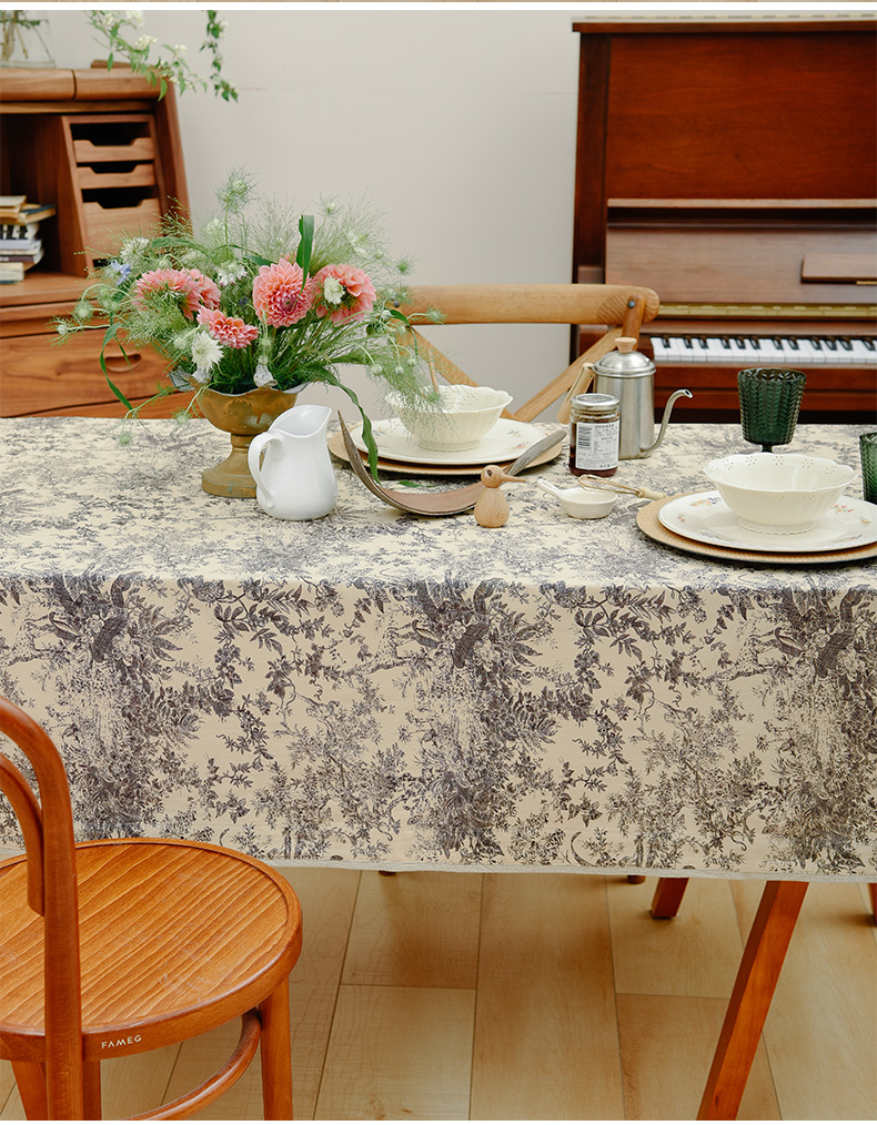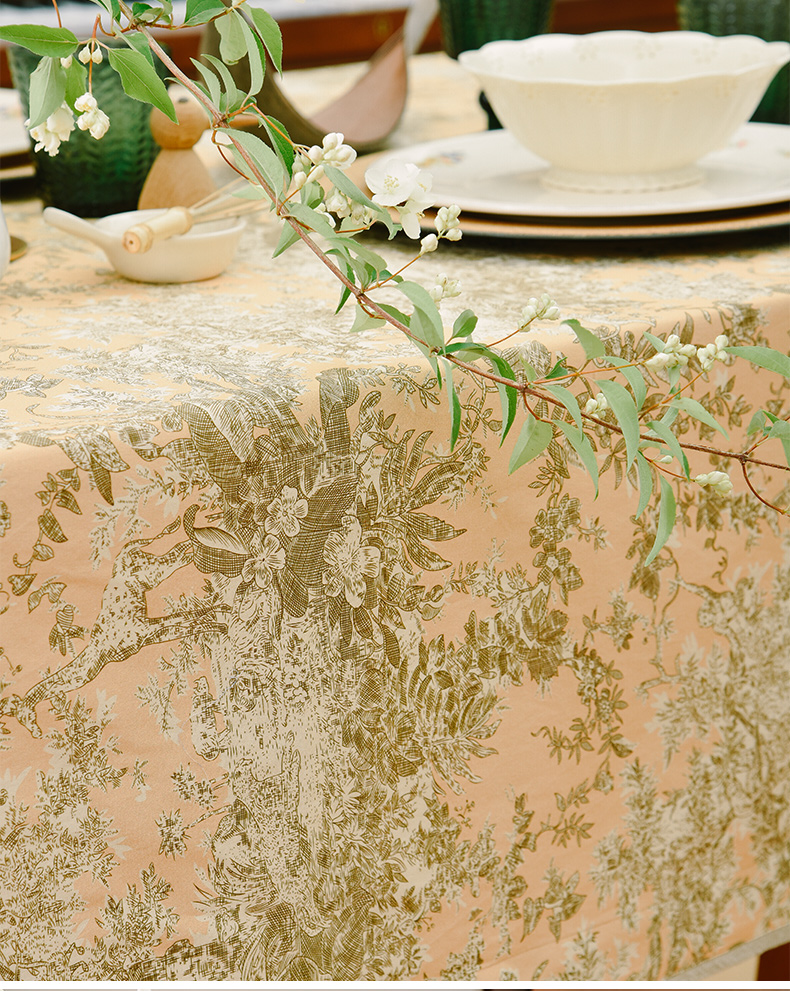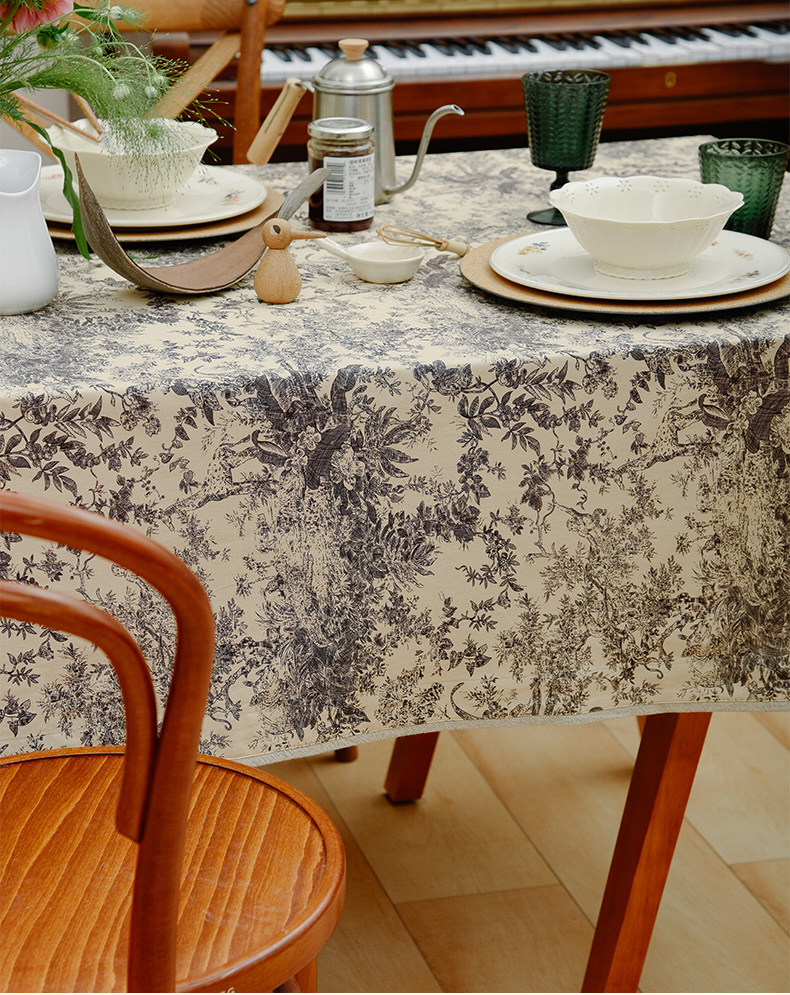 法式丛林线描桌布新中式茶几餐桌布