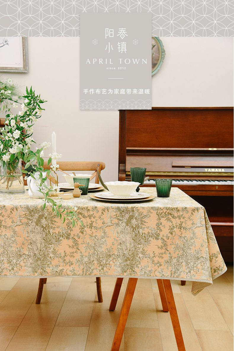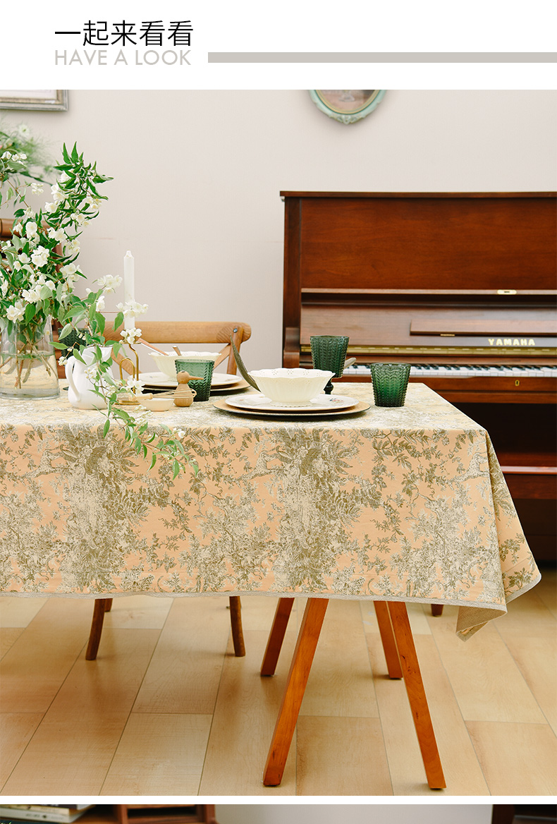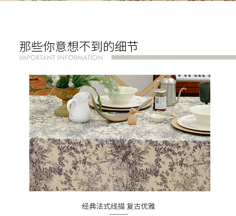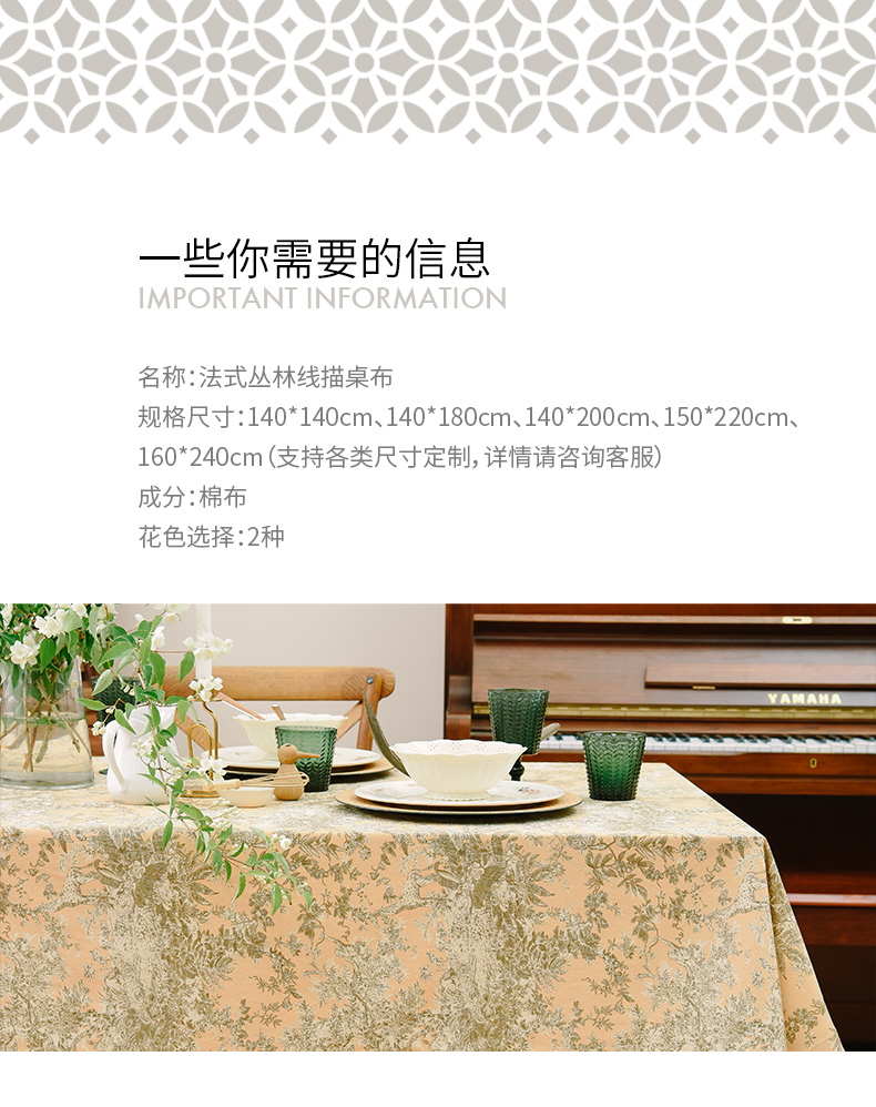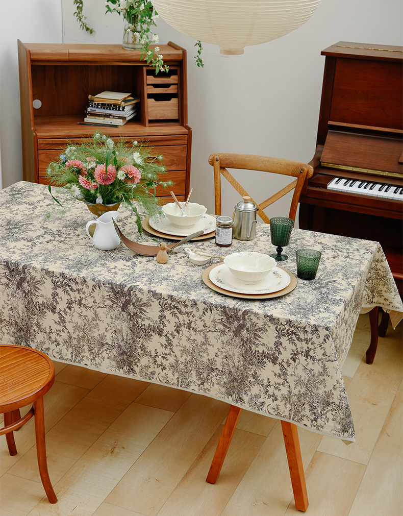 法式丛林线描桌布新中式茶几餐桌布