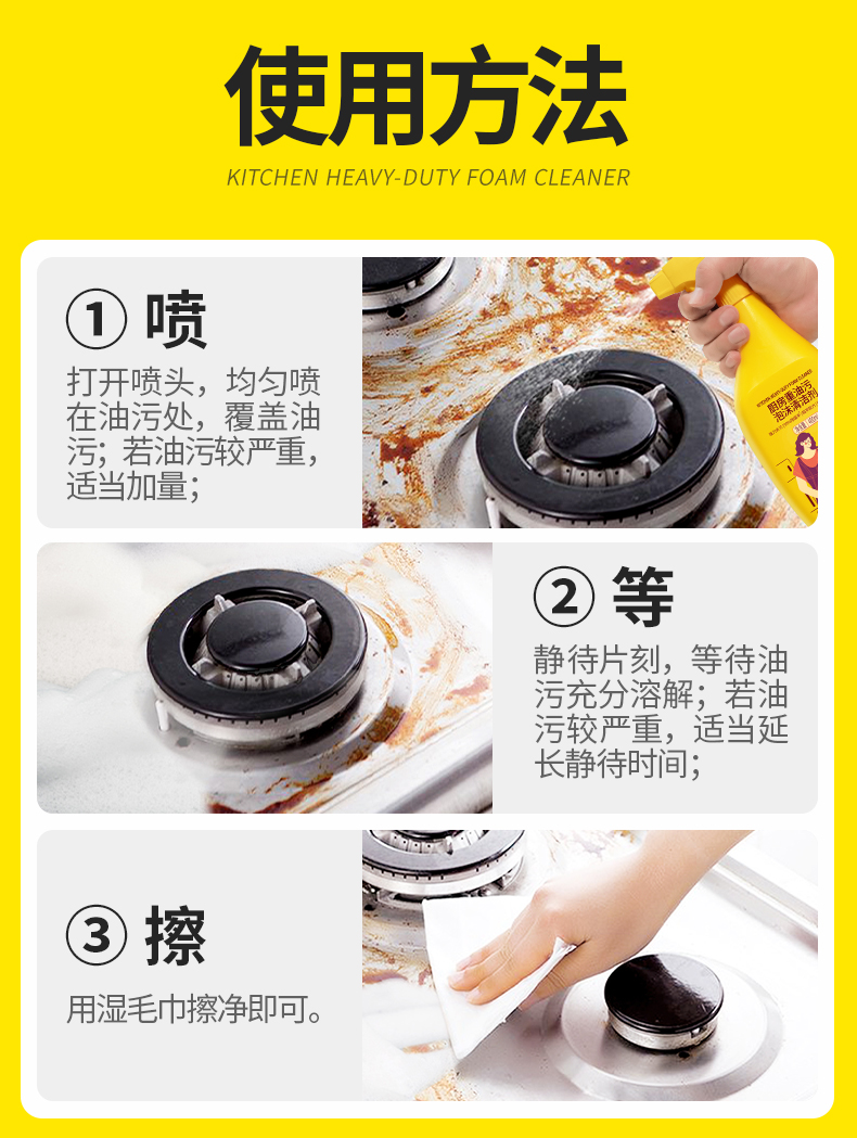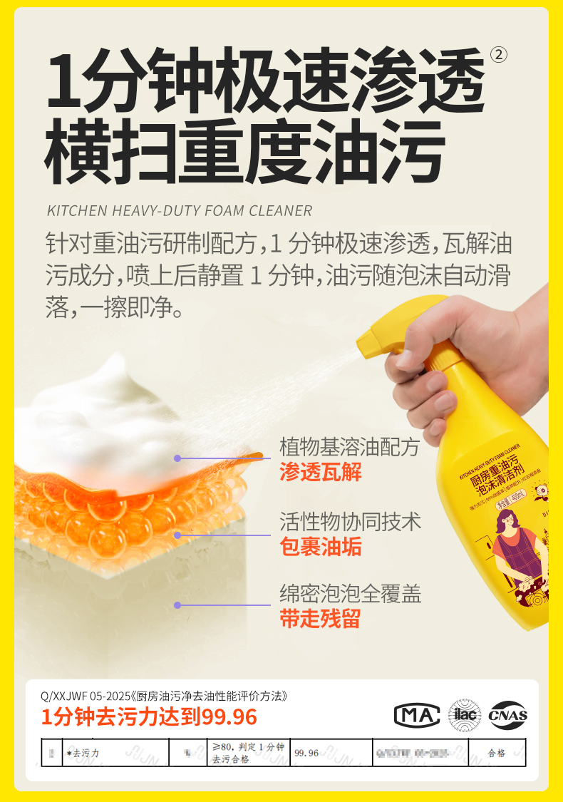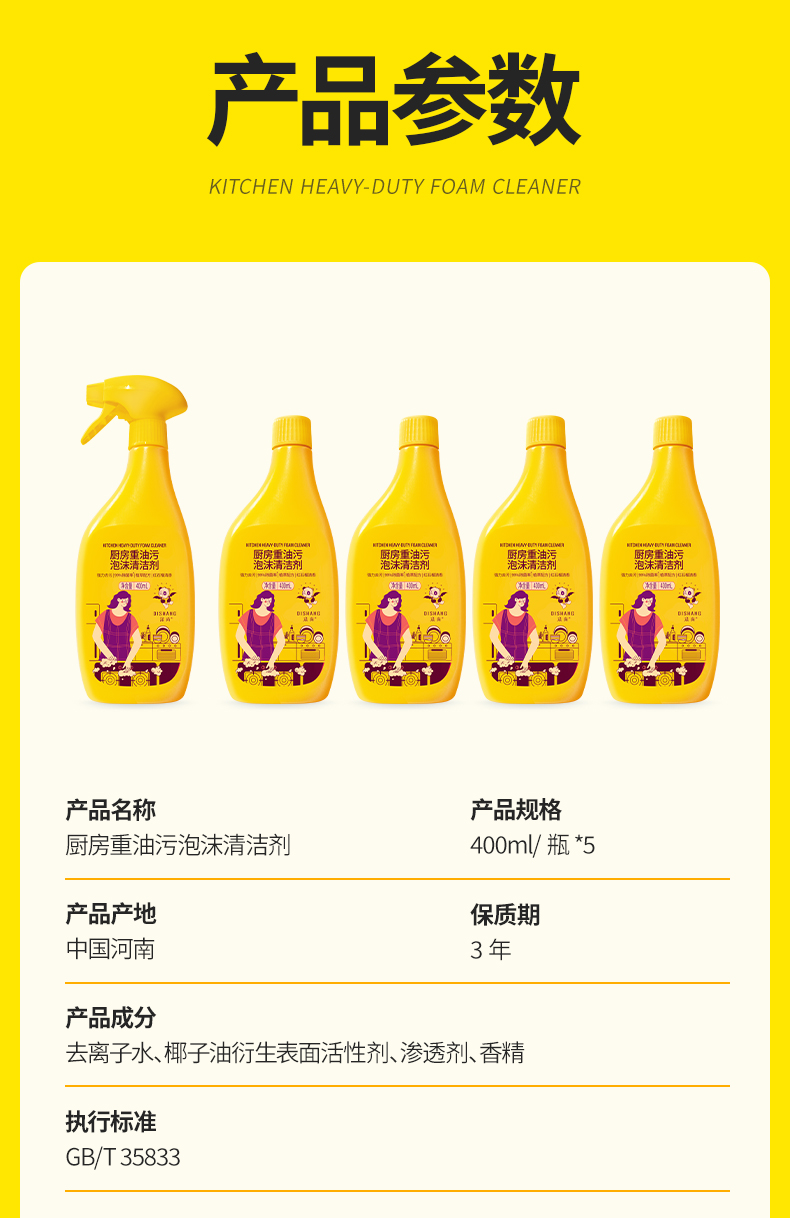 涤尚厨房重油污泡沫清洁剂5瓶(配1个喷头)