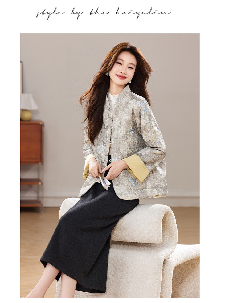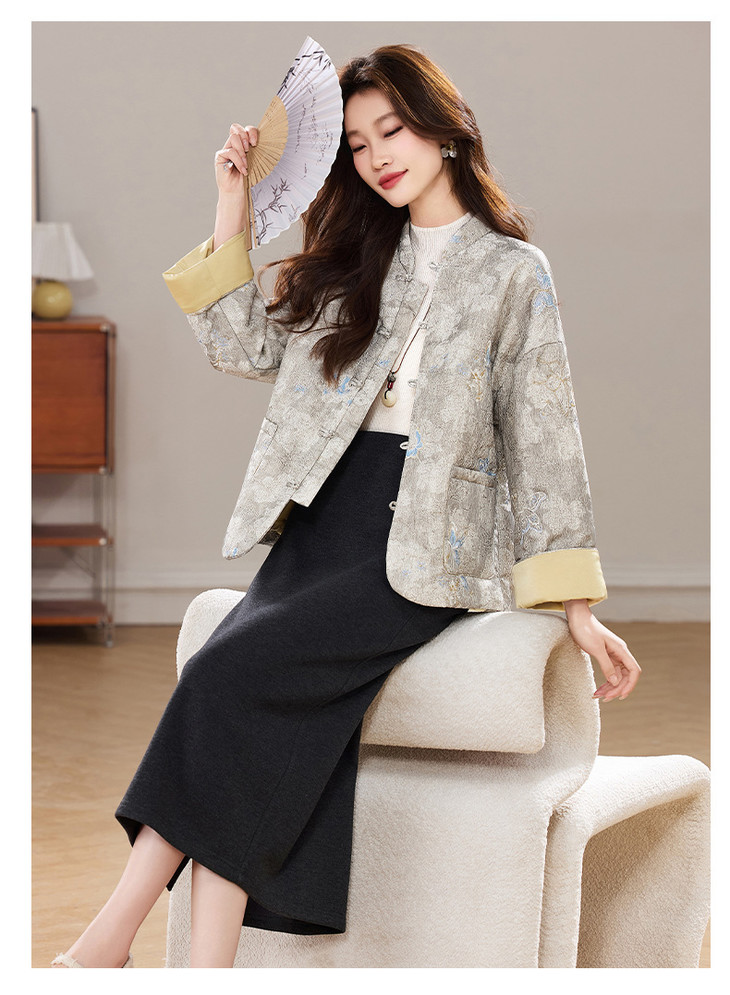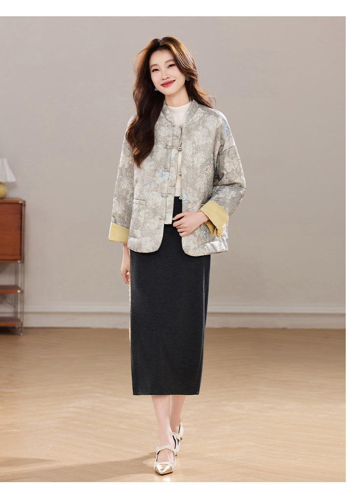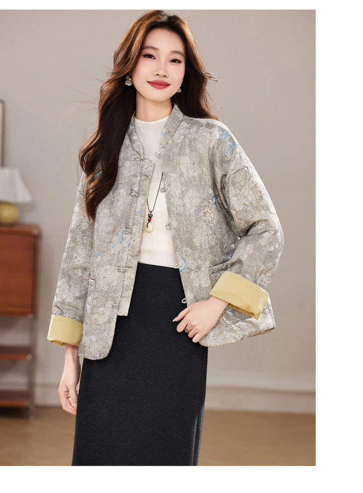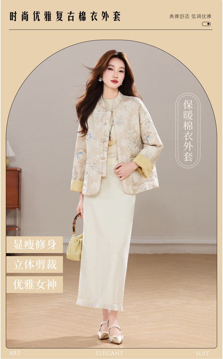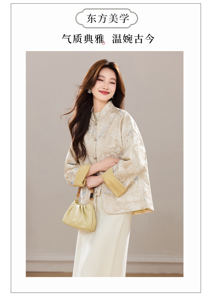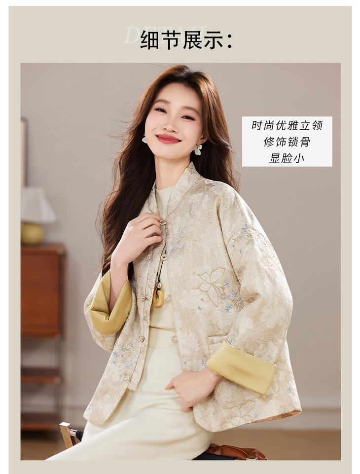 新款洋气加厚新中式气质优雅盘扣款刺绣棉衣上衣外套633