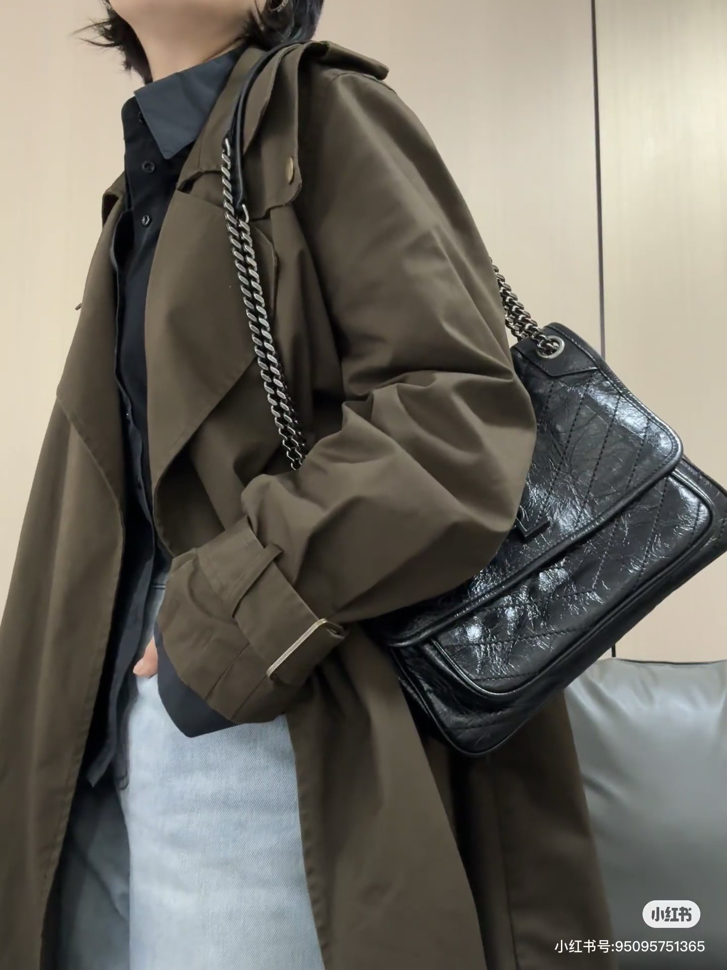 工厂清货⚠️ YSLNIKI 气质风格 油蜡皮 链条个性 皮质柔软 可休闲可女人的一款 经典用不过时款 中号 28-20-9