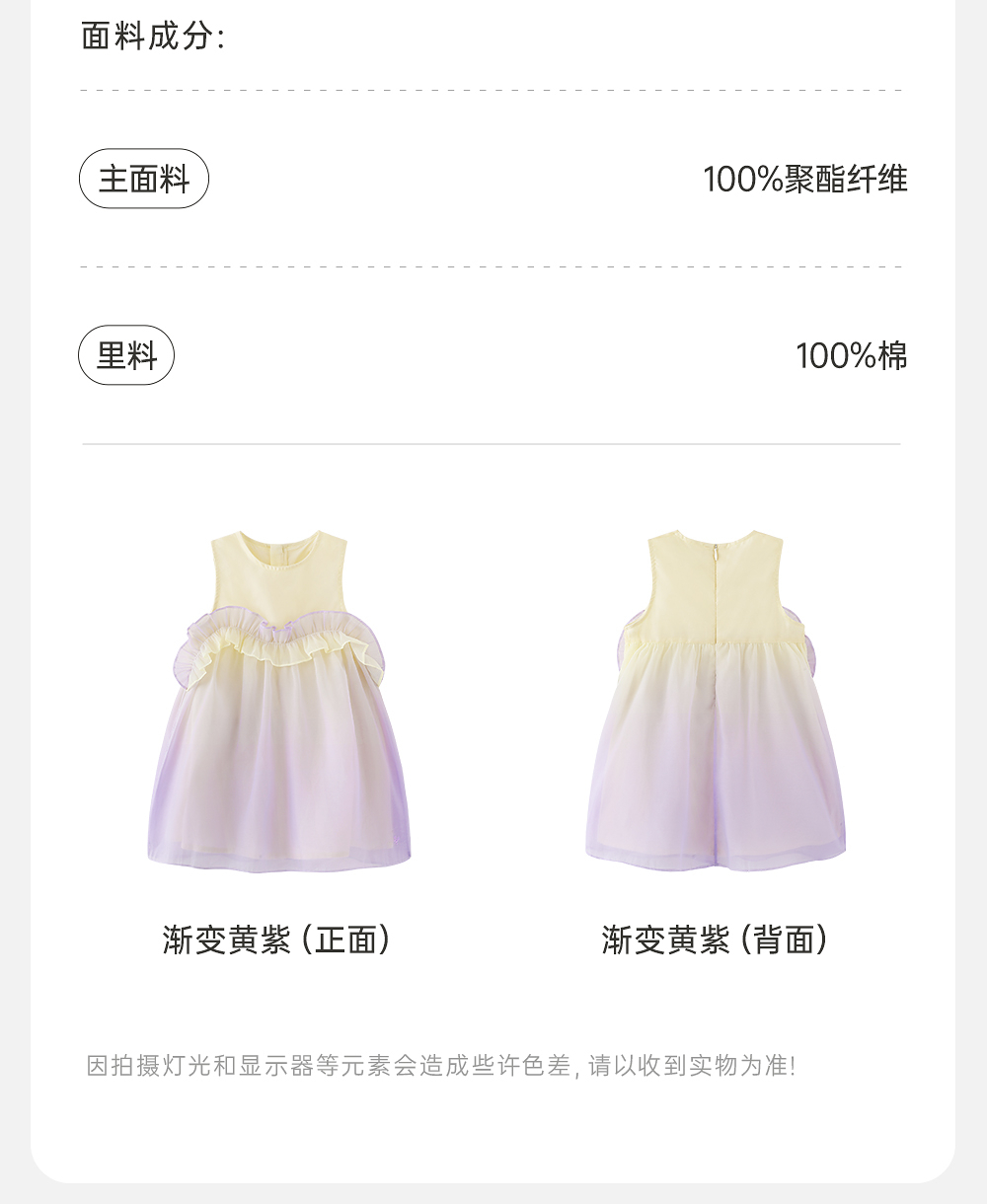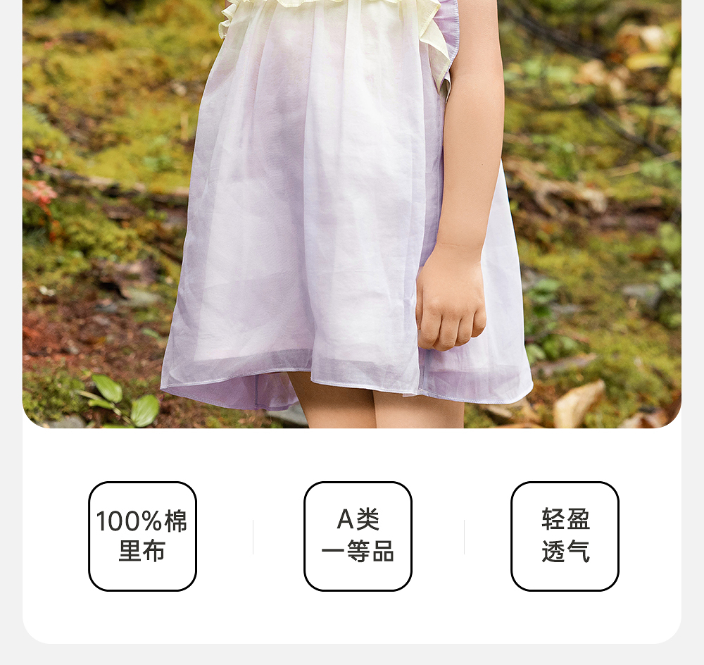 【商场同款】英氏女童连衣裙夏季透气裙子时尚渐变女童背心裙新款