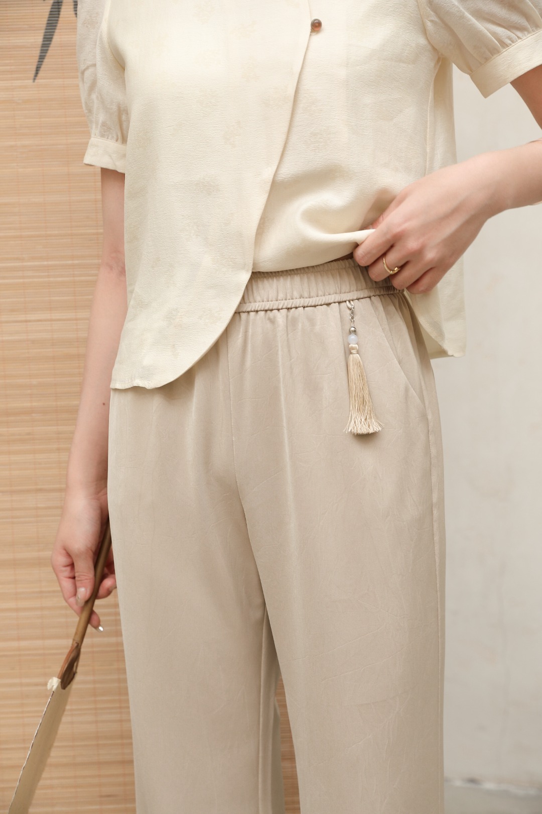 黑色 成份:50%再生醋酸纤维 43%聚酯纤维 7%氨纶