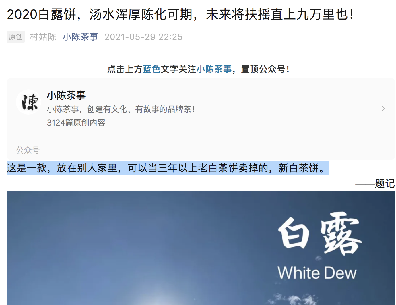 2021年5月29日的时候,我们喝它的时候,就说“这是一款,放在别人家里,可以当三年以上老白茶饼卖掉的,新白茶饼。”并大胆的预测过,这是一款未来可期的白茶饼!