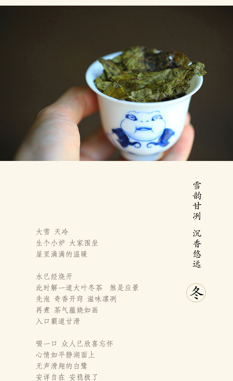 - 2021年,嘉木会创办了“藏茶密室”,开启了全新的藏茶模式,秉持“不将就,不迎合”的理念,通过“选、藏、养、醒”的方式,再度诠释藏茶的深意,沉醉杯汤,苦乐自知,茗透于心,迷之不悔!