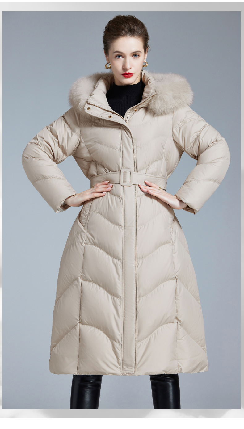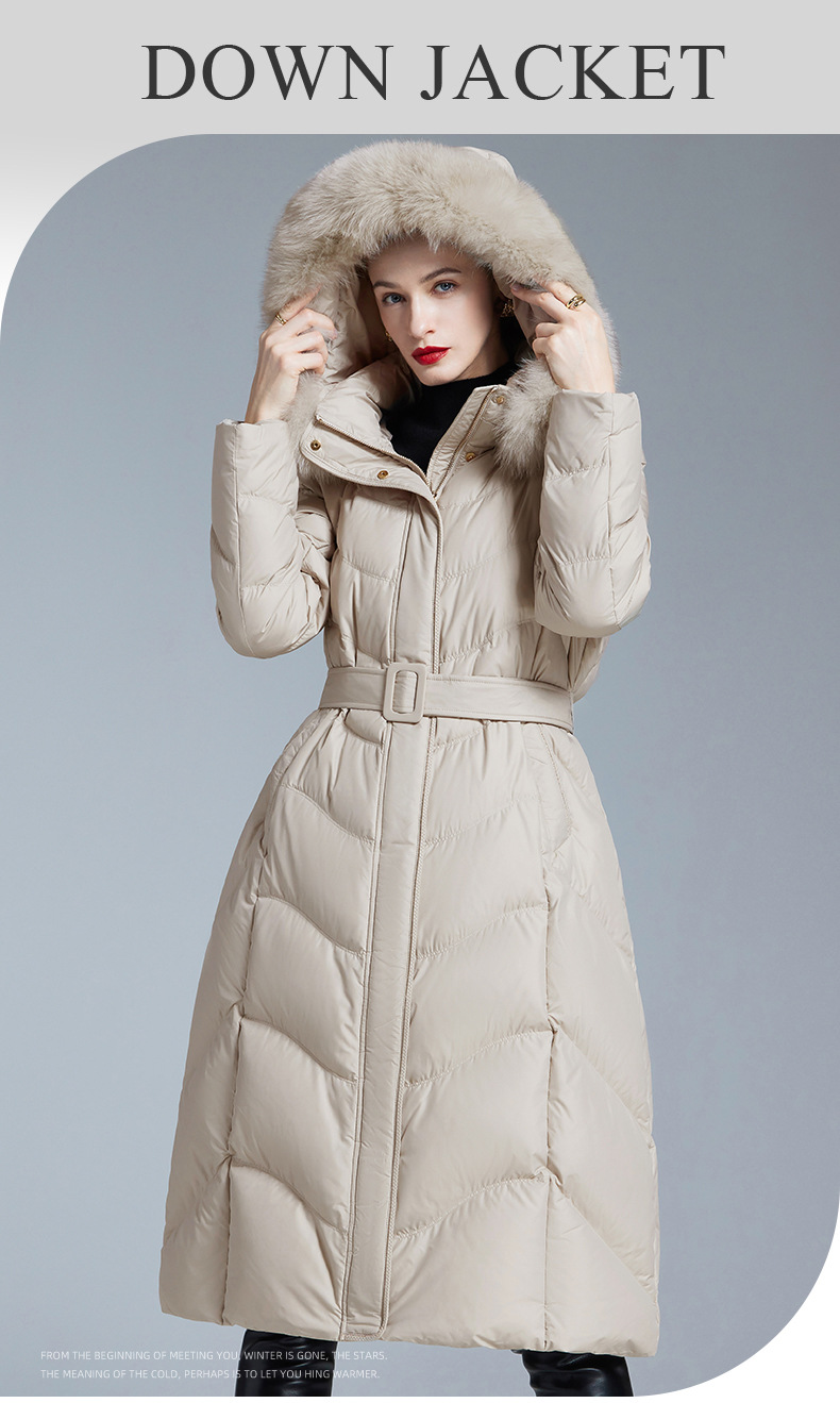 「高货kbnq」全新升级【铂金会员947/天猫1279/差价332】(14132)洛诗琳气质连帽羽绒服2025冬季长款过膝加厚保暖外套