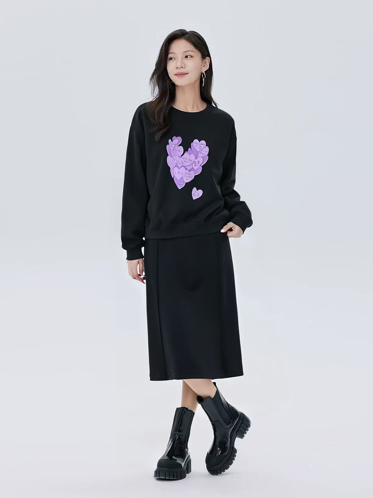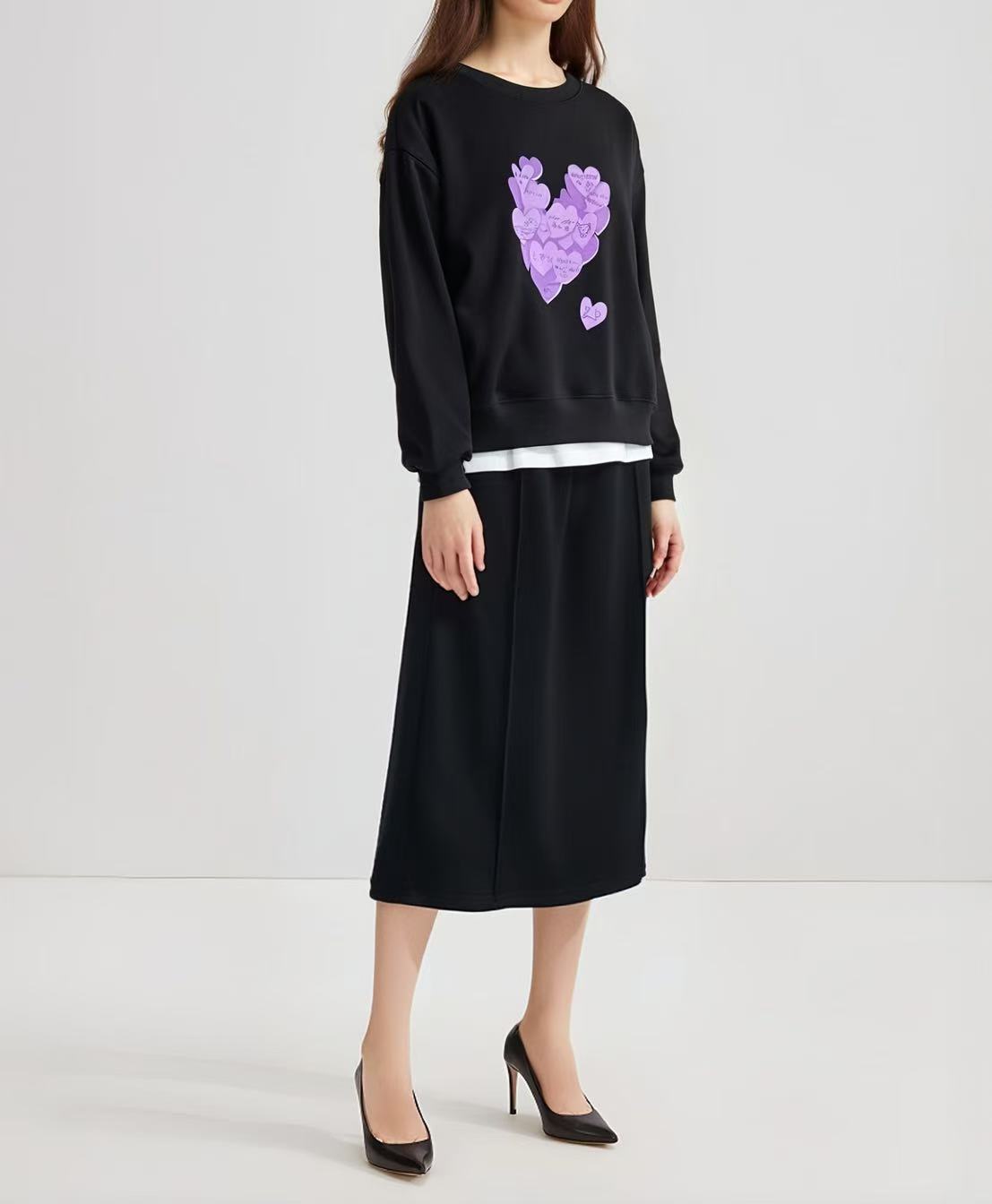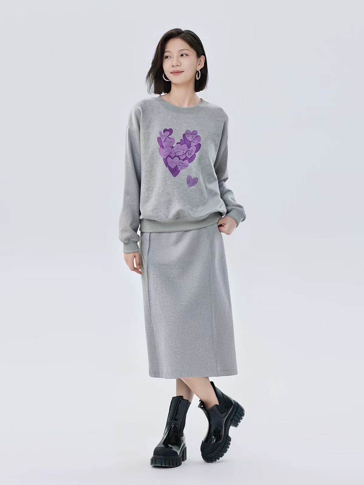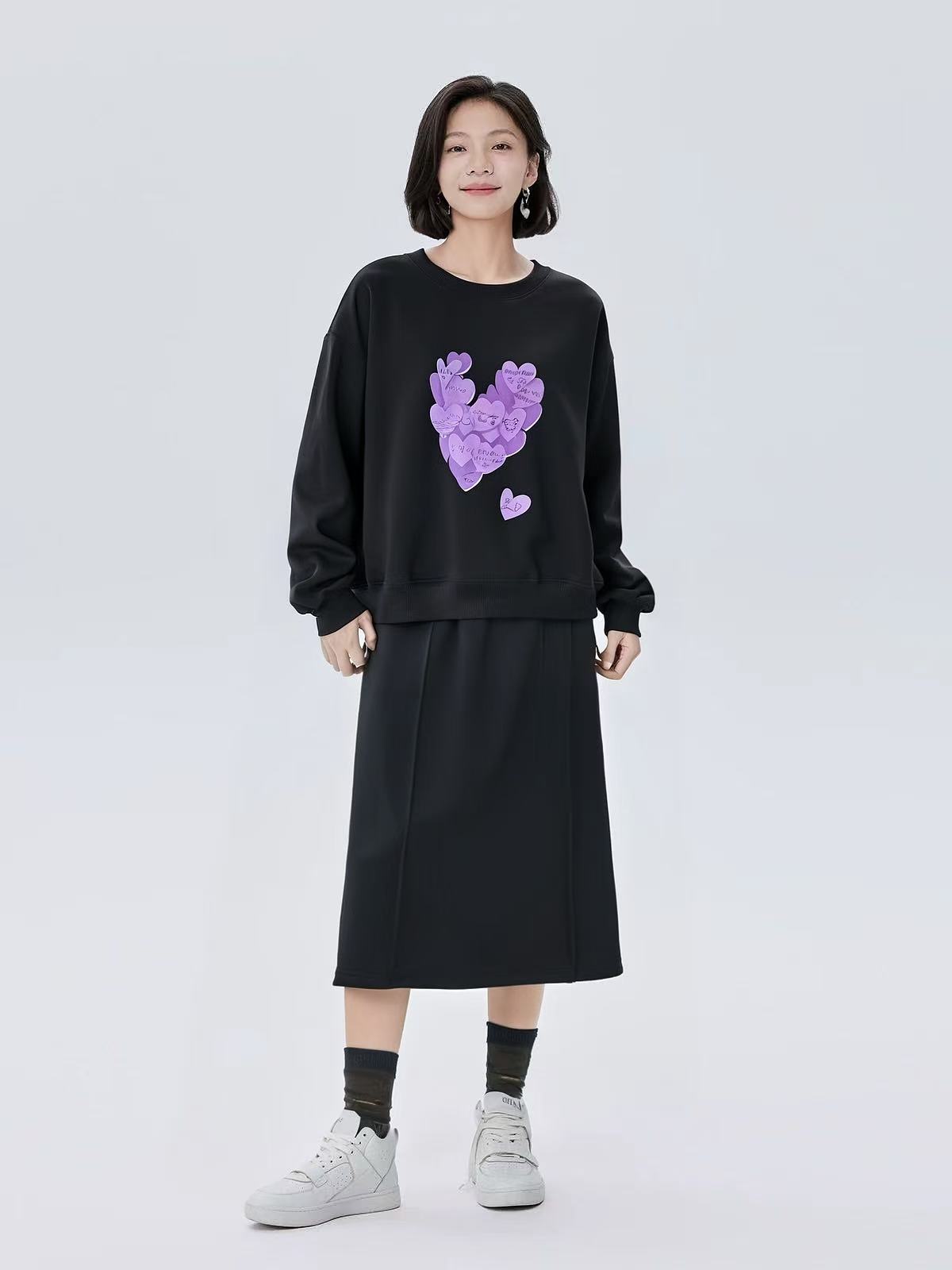 年中清仓-【套装】紫色爱心卫衣➕半裙后开叉两件套-喜出