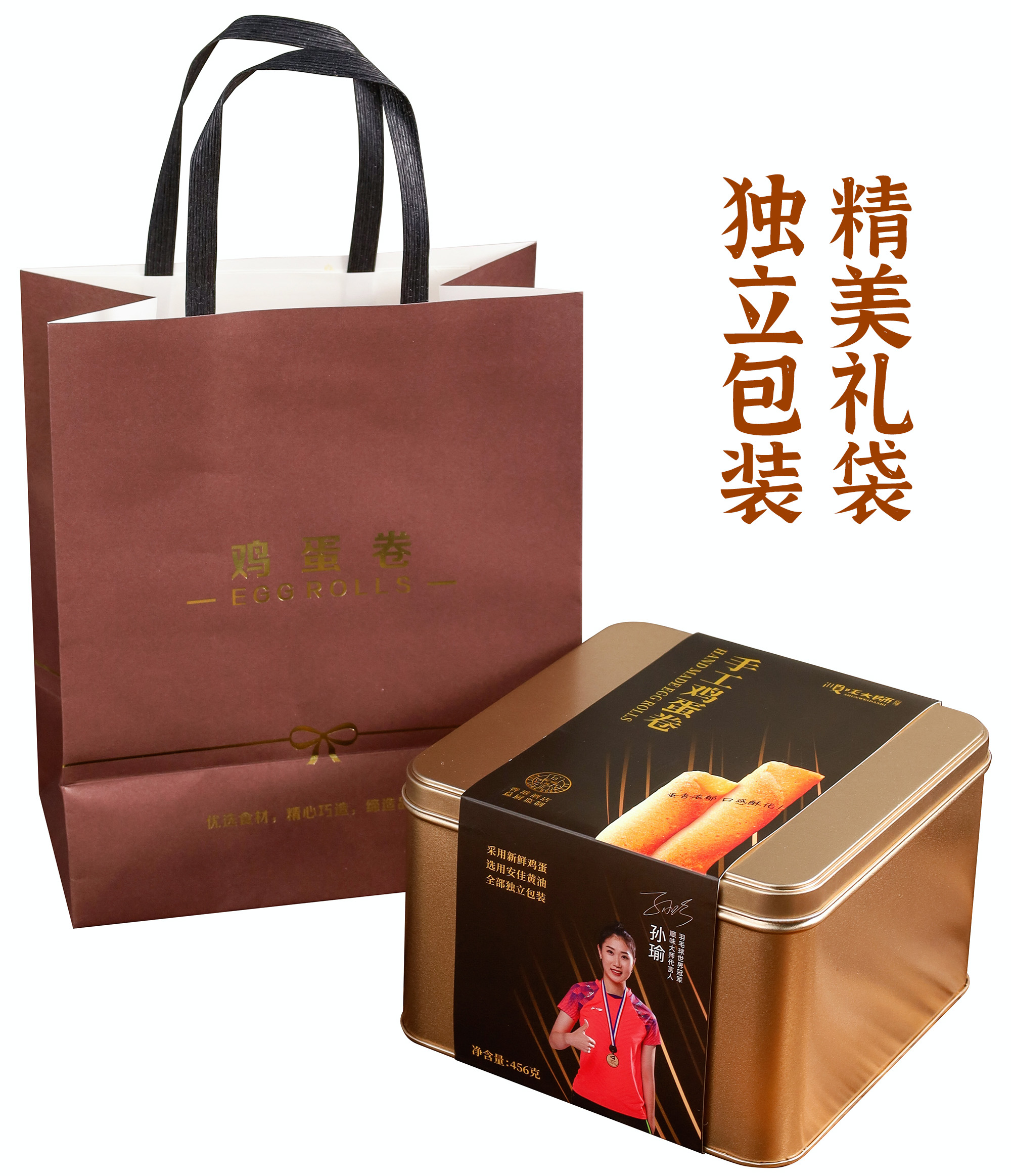 这款包装使用了经典的铁罐礼盒,里面是每两条一起的独立包装,食用、携带方便避免受潮,搭配简约大气的手提袋,自用或送礼都非常合适。
