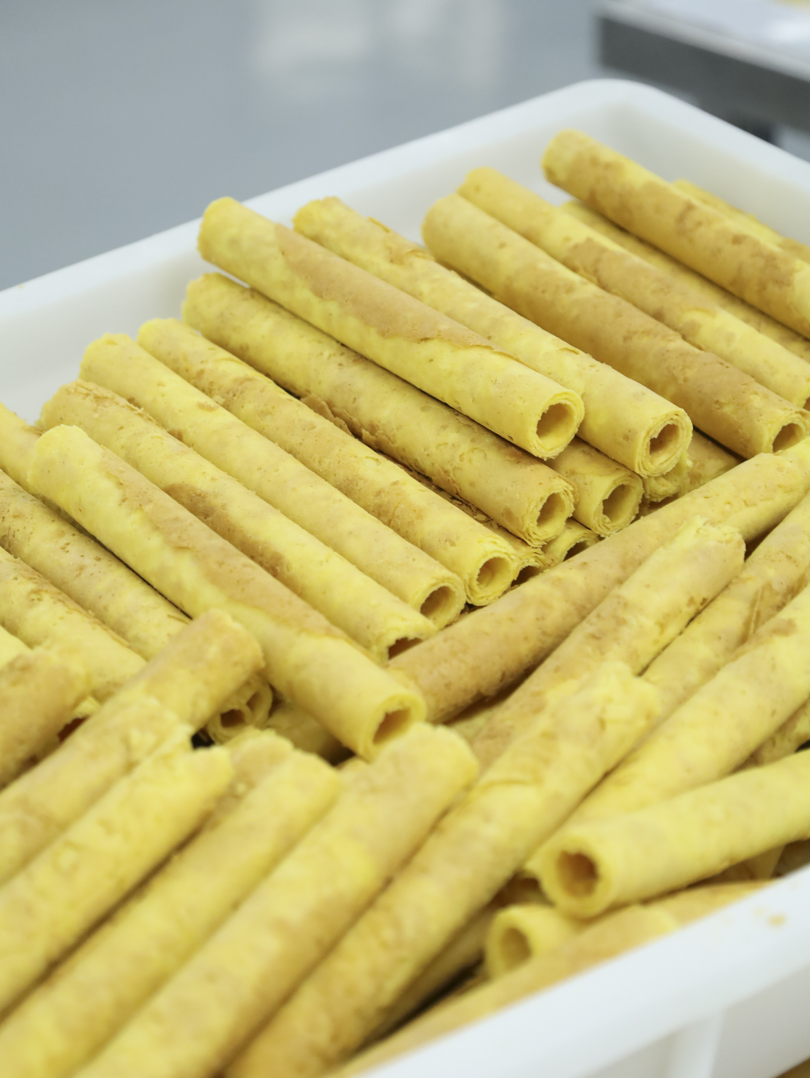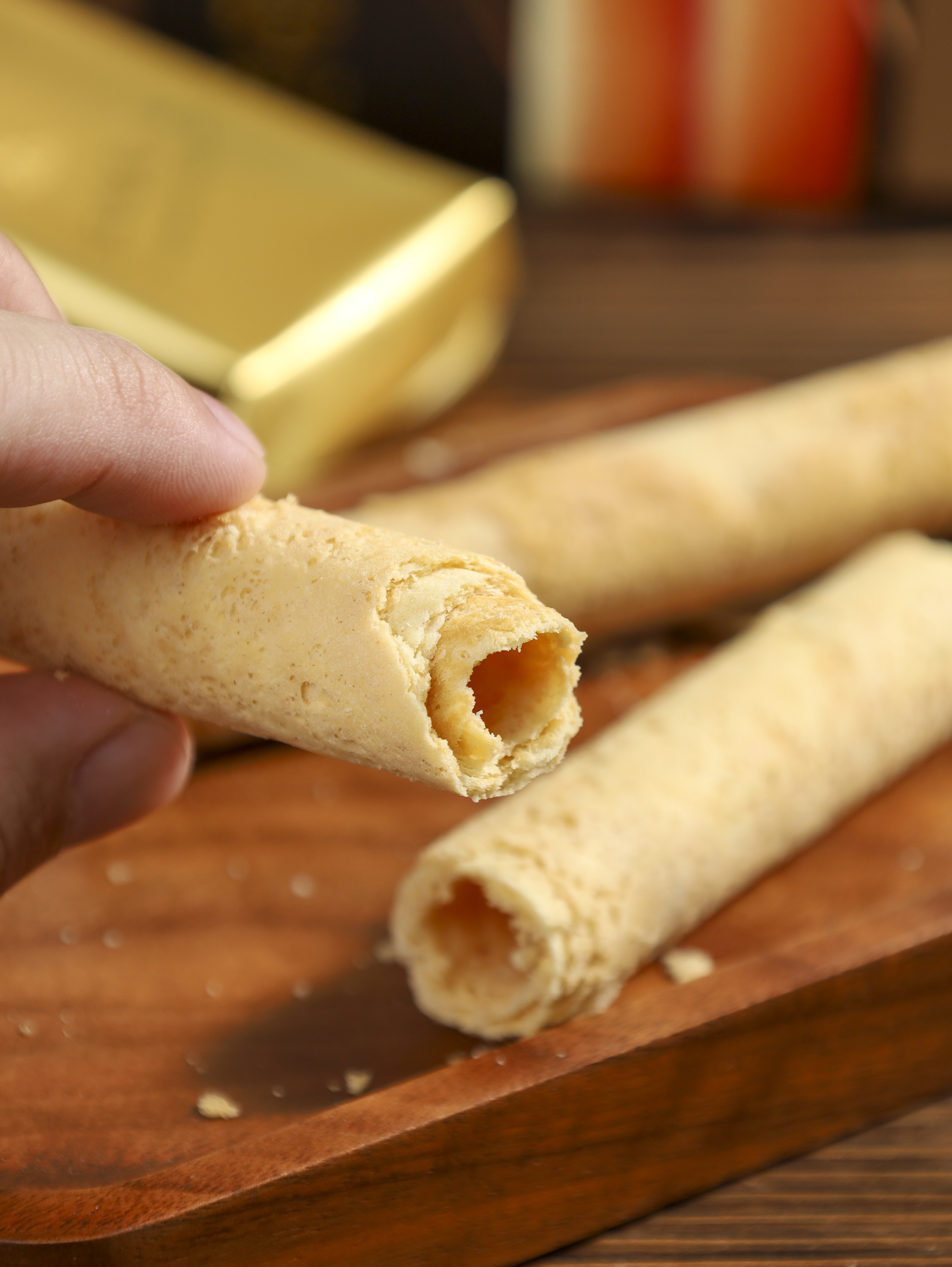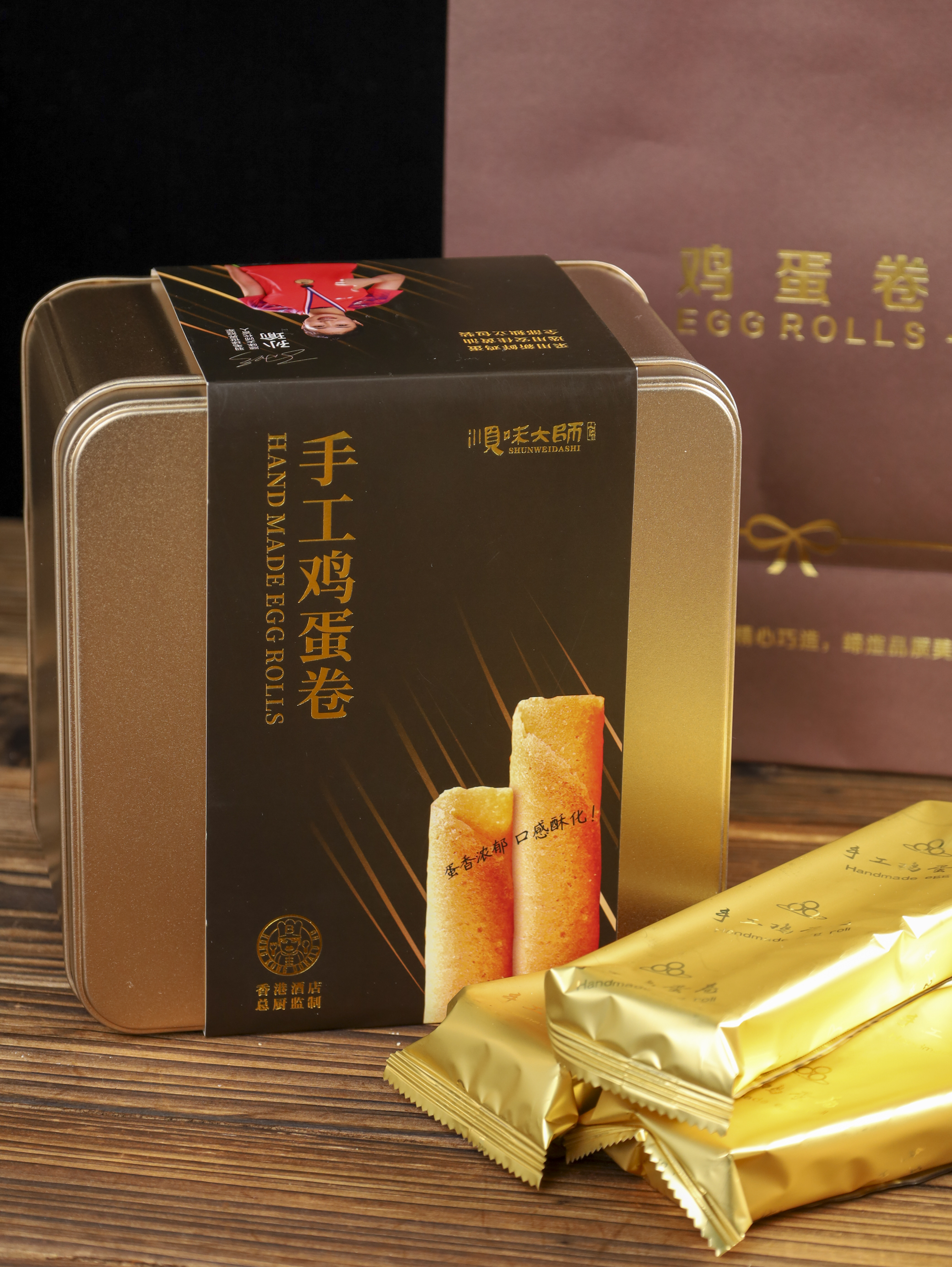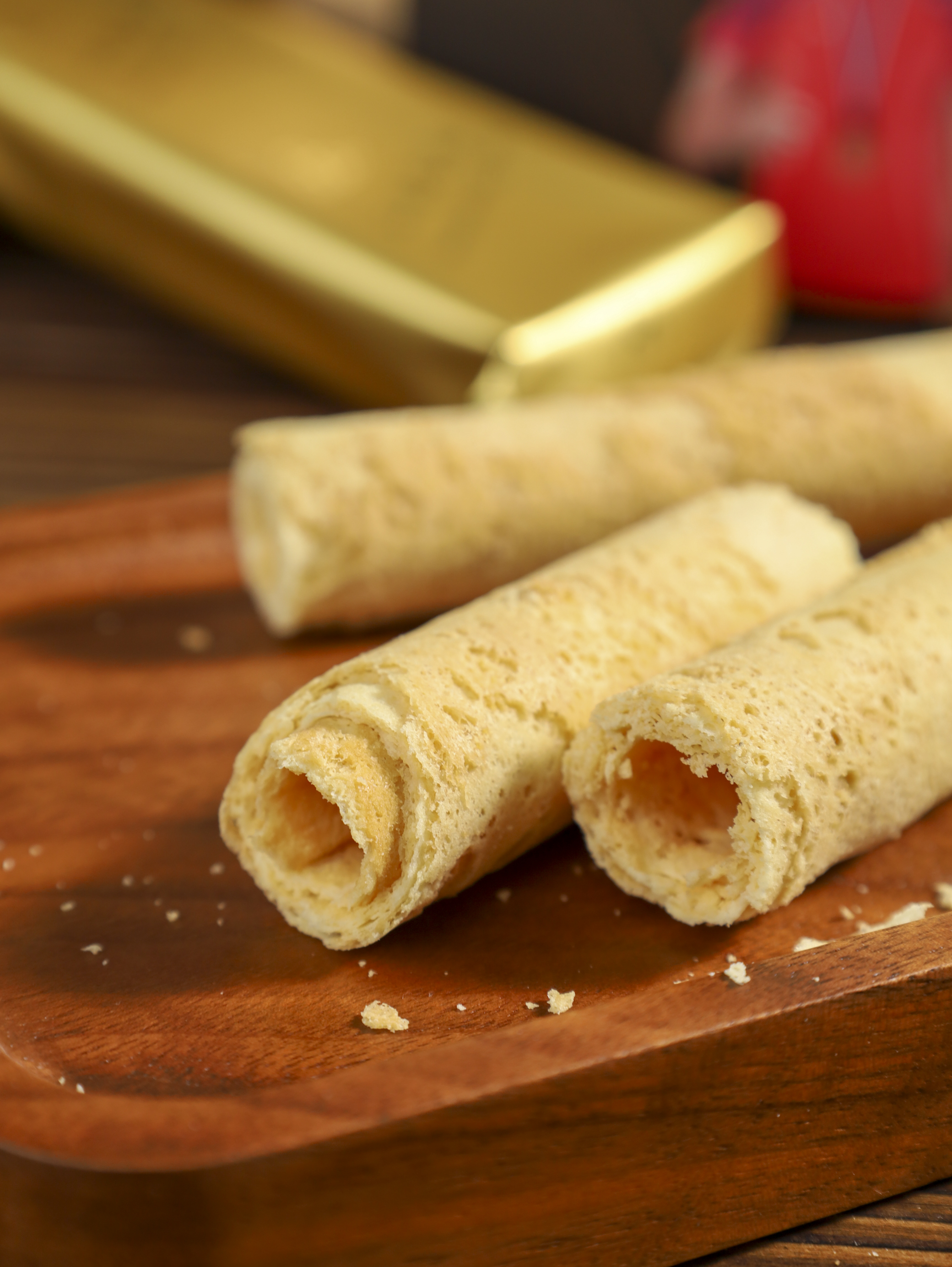 而这款蛋卷,它可能更接近记忆中的味道,因为它是不含防腐剂、香精和其他人工添加剂的。主要原材料就是鸡蛋和黄油,简简单单、真材实料,经由香港酒店五星级师傅调整配方比例,因此入口就是纯纯的黄油和鸡蛋的自然香味。