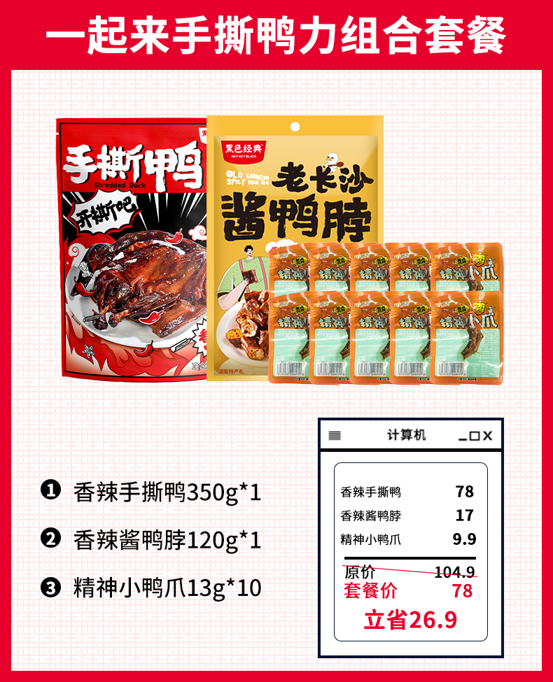 【超值套餐】手撕鸭力组合套餐 包邮(偏远地区除外)