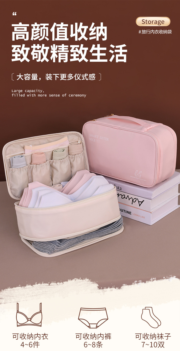 假期出行【懂你的收纳需求!贴身衣物分格存放】爆款双层内衣收纳包出差旅行贴身衣物收纳袋文胸内裤袜子整理包。ry