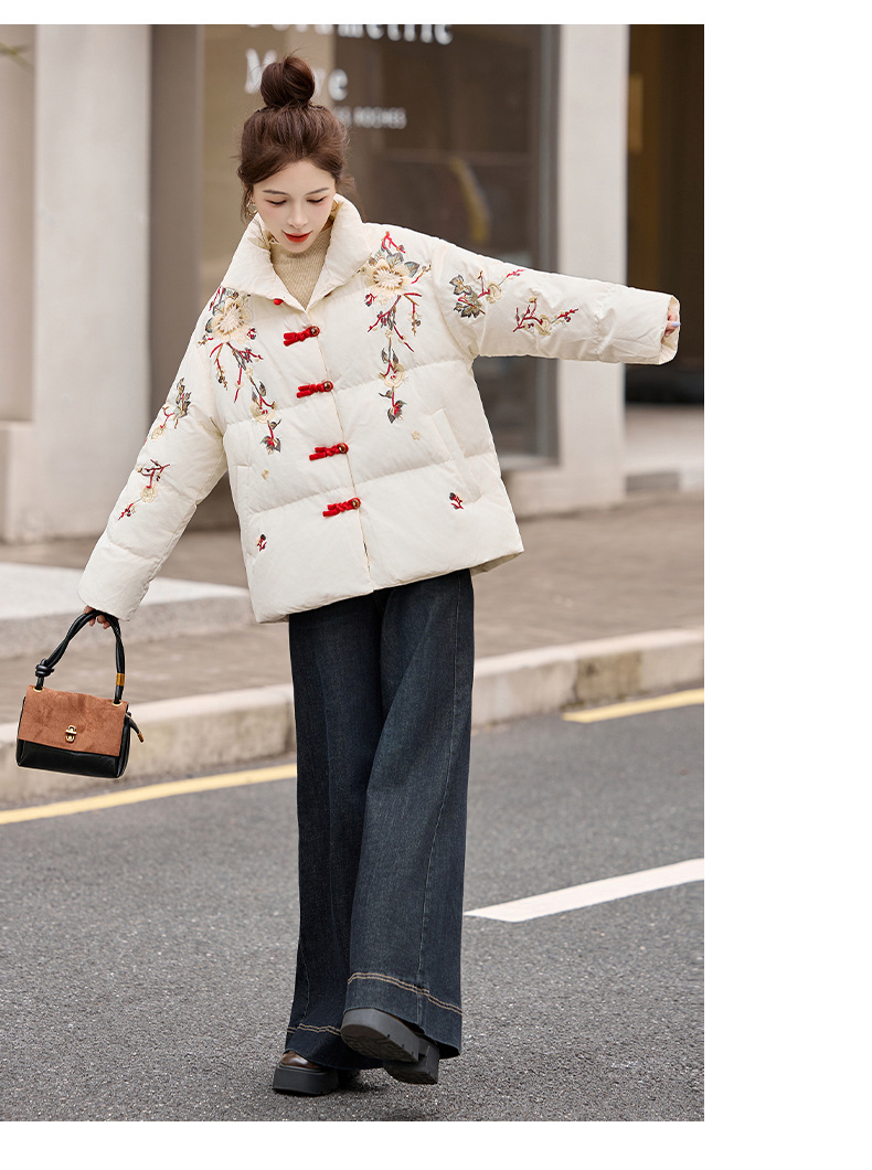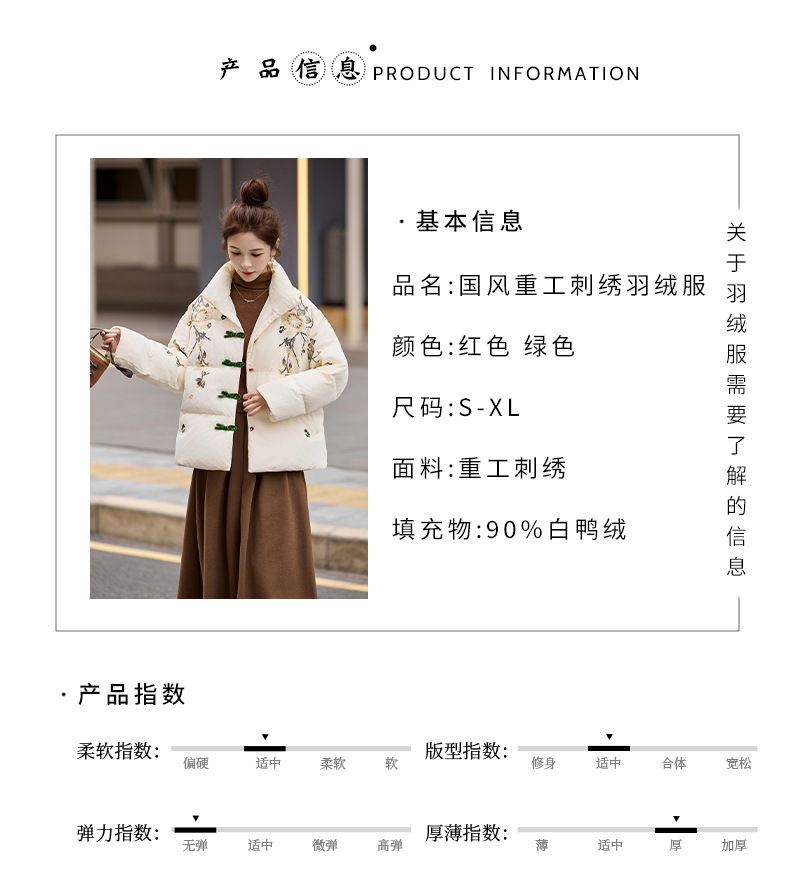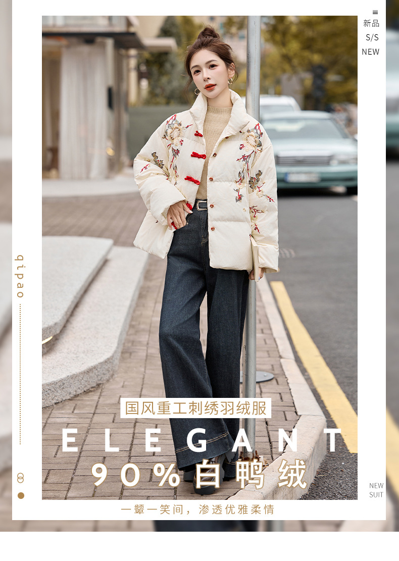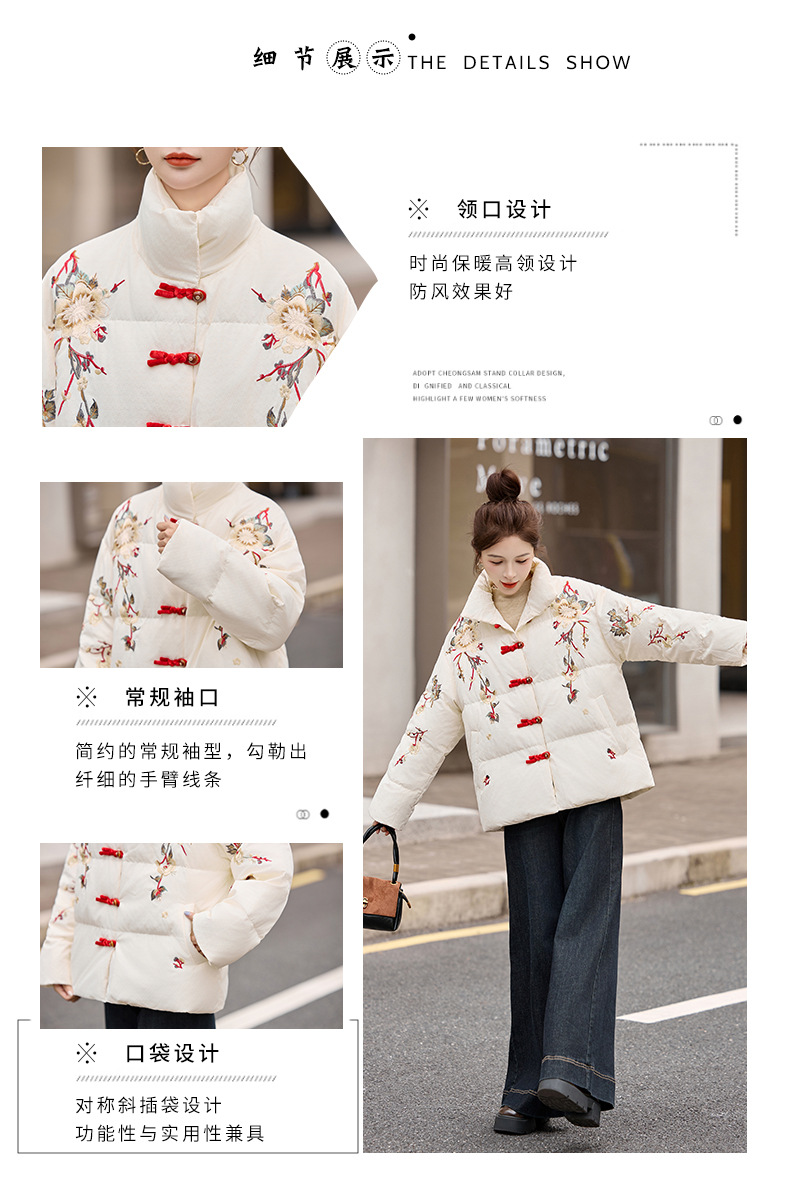 新中式国风重工刺绣羽绒服,复古盘扣白鸭绒短款外套HR-GJC5516