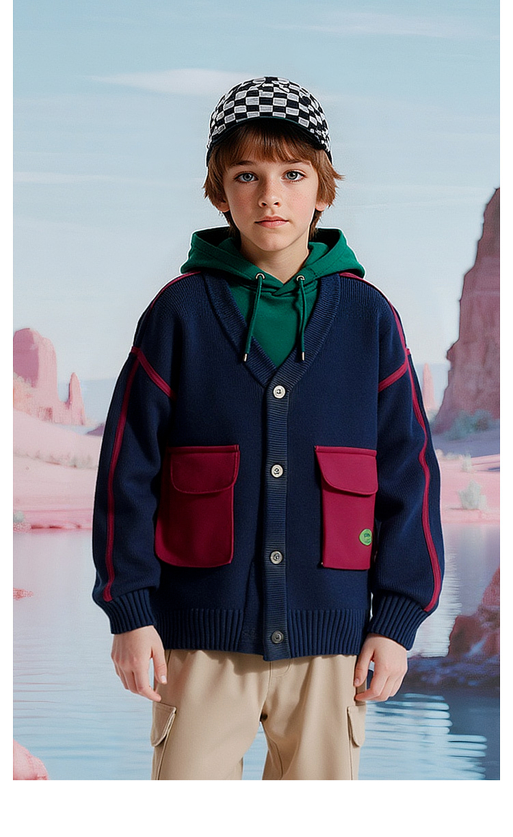 【MQD】童装男童开衫毛衣2025秋季新款儿童大童韩版宽松撞色针织外套