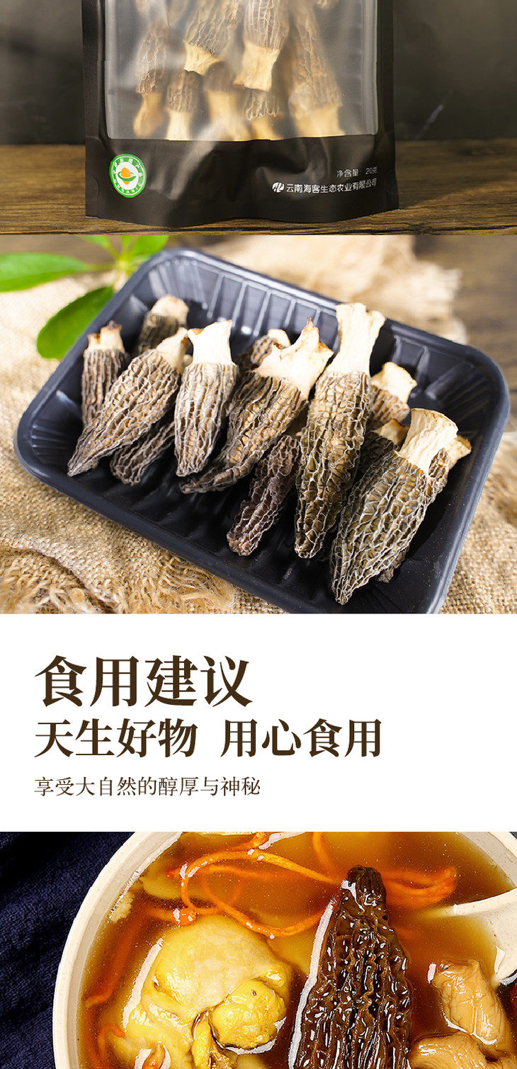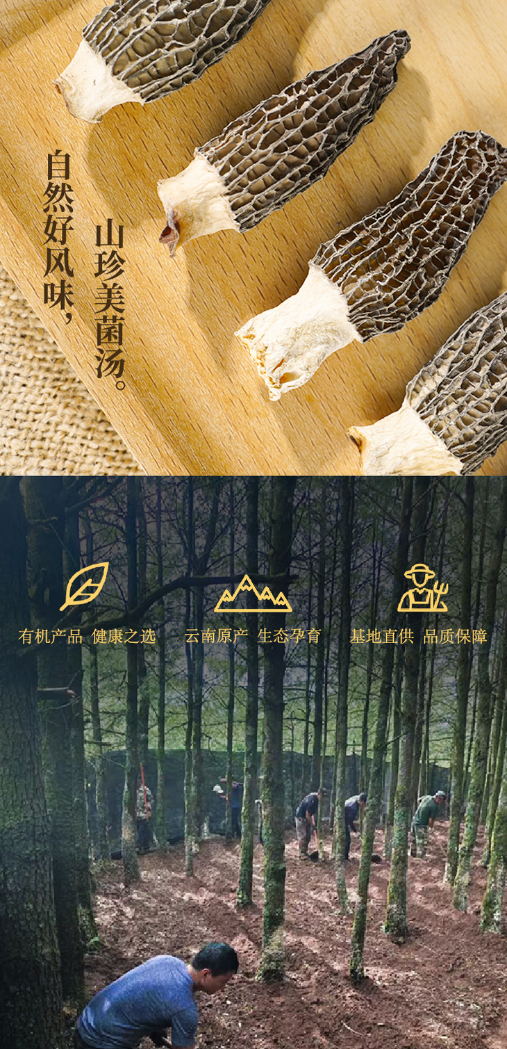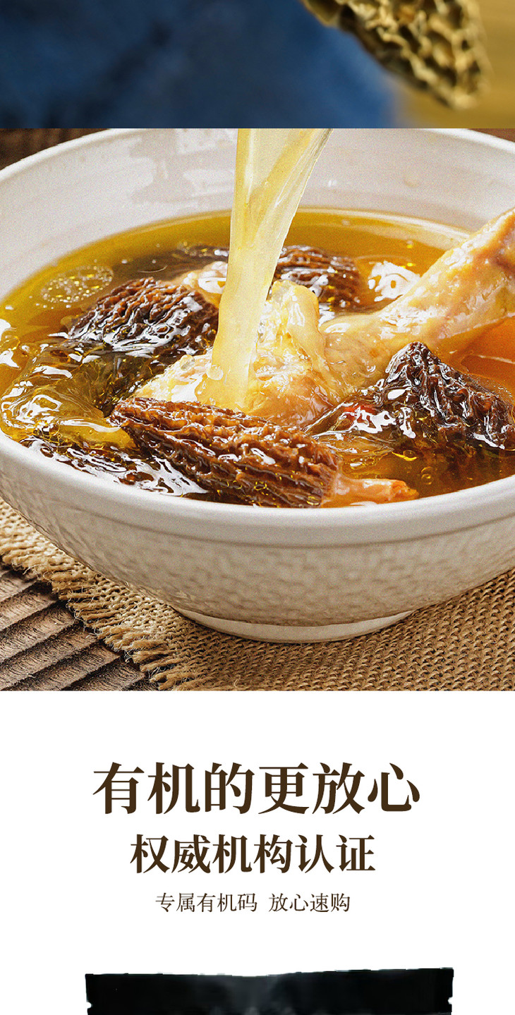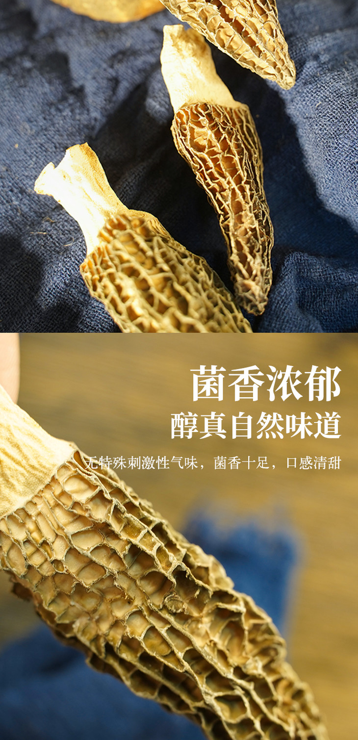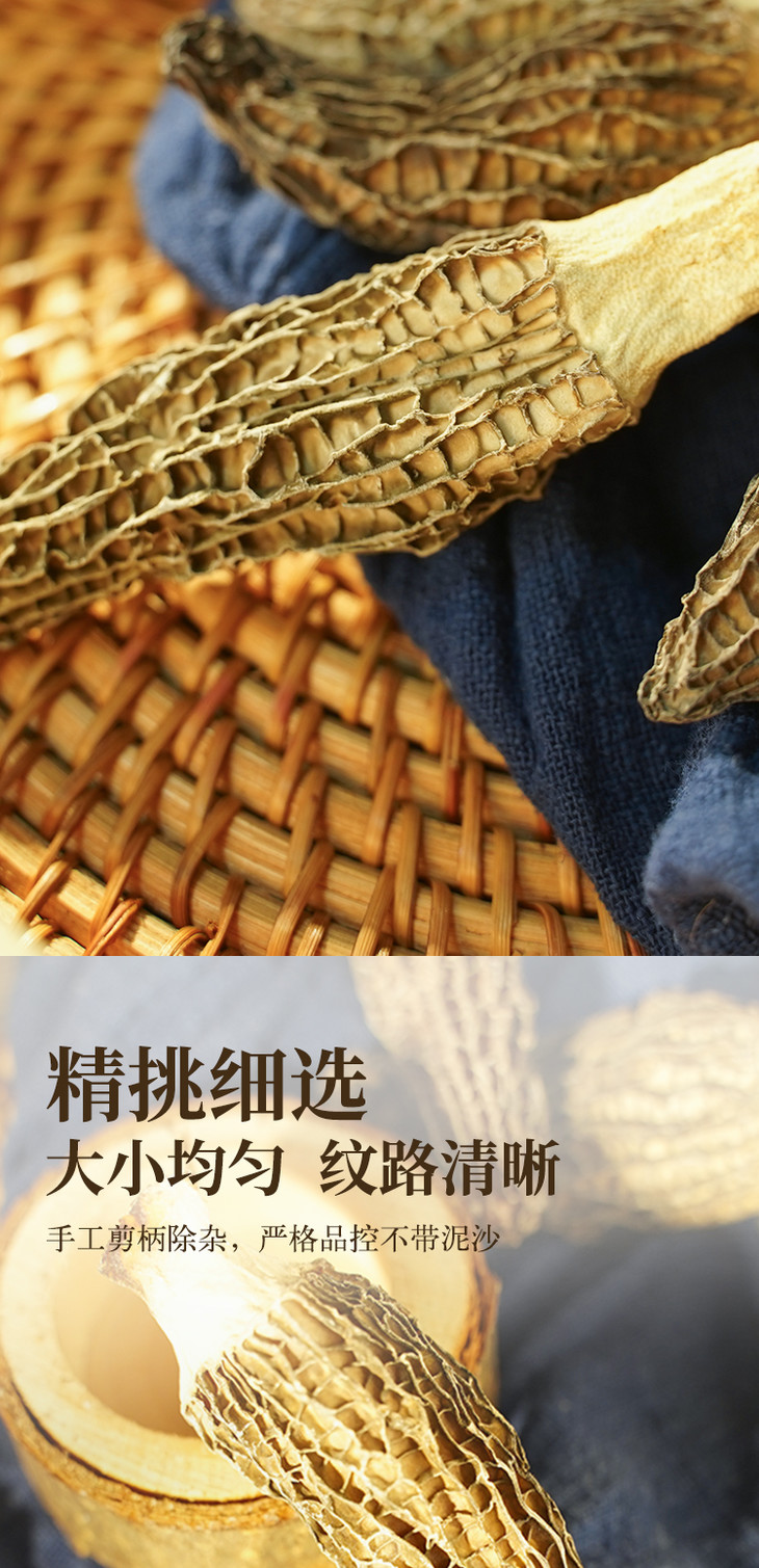 【云南高山有机羊肚菌】头茬新货 太阳自然晒干 精挑细选 大小均匀 纹路清晰 煲汤 炖煮 素炒皆可 2种规格任选