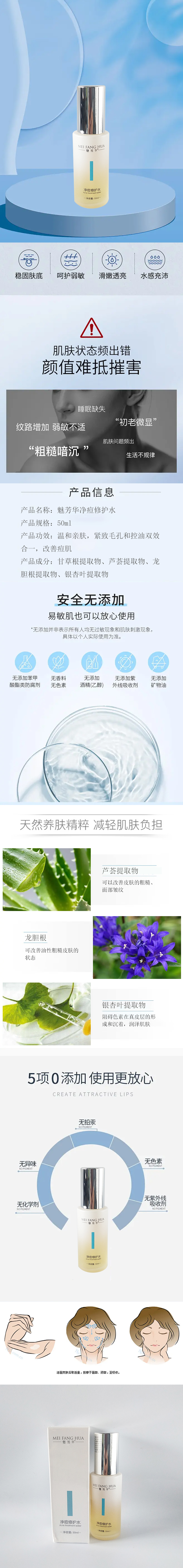 魅芳华净痘修护水新品甘草龙胆液50ml改善干燥平衡皮肤水油