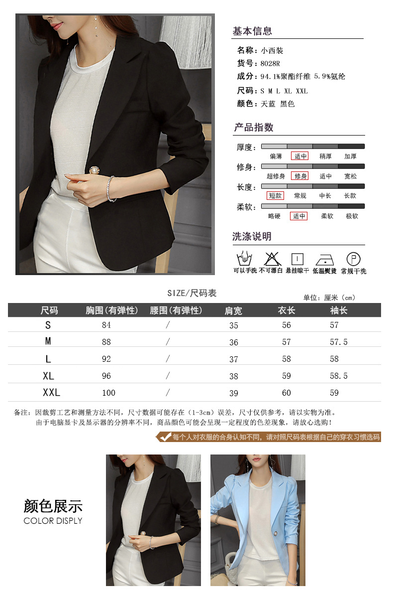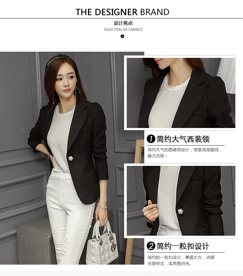 YM-R8028韩版大码时尚修身长袖小西装外套女士休闲西服