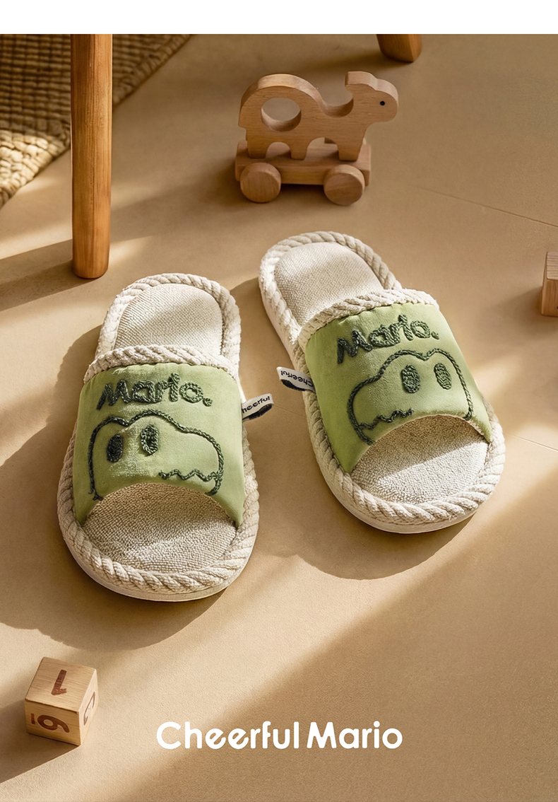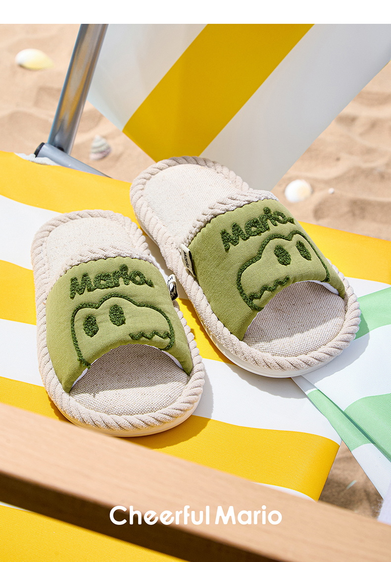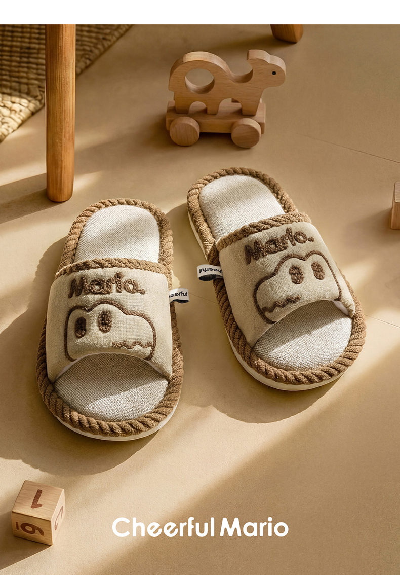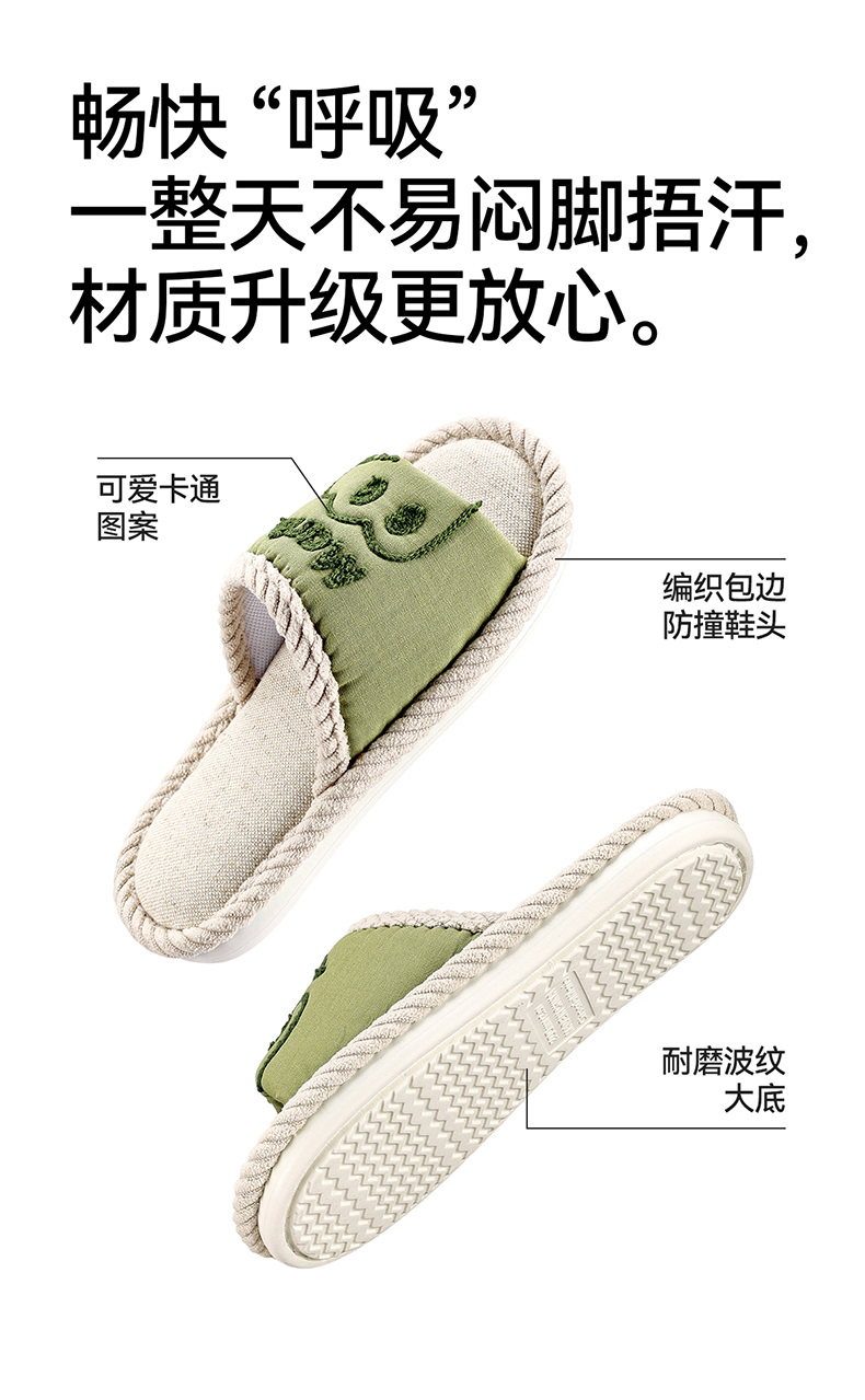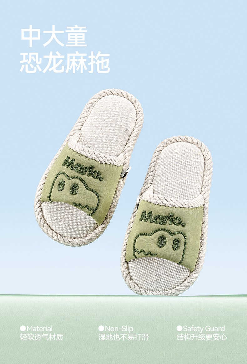 【秒杀】幸福玛丽 恐龙中大童亲子款麻拖鞋 可爱卡通图片 编制包边防撞鞋头 耐磨波纹防滑大底