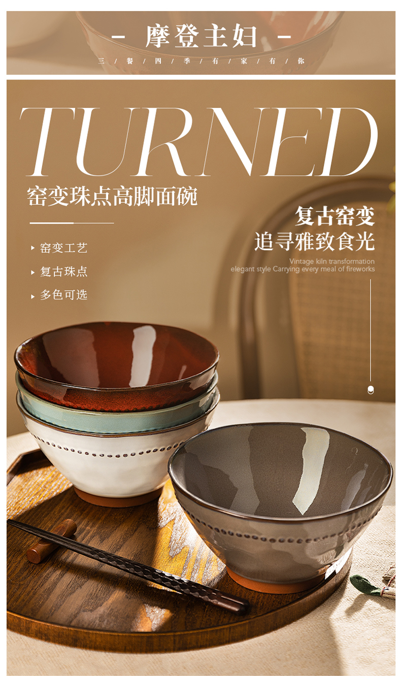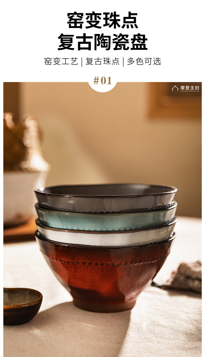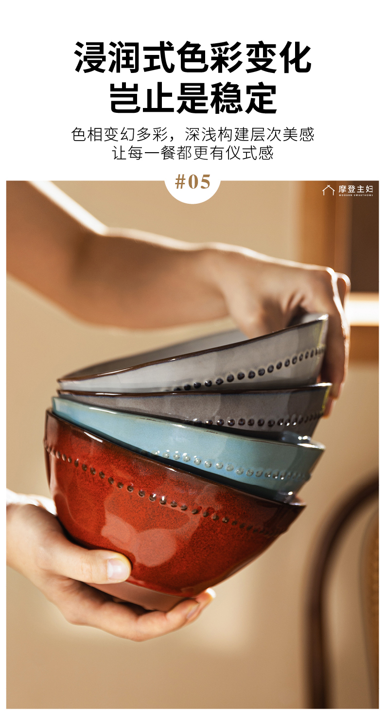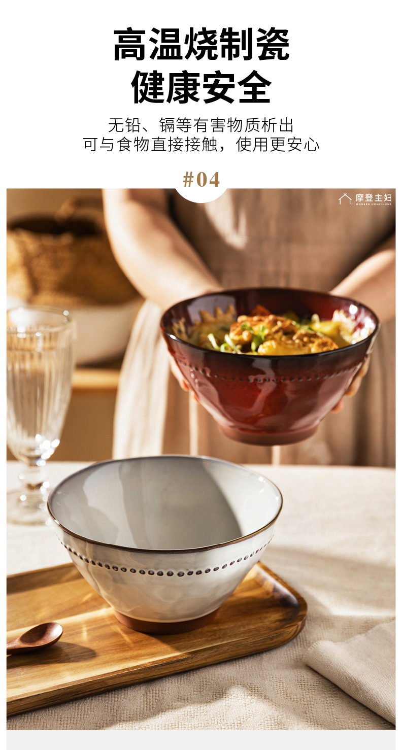 摩登主妇拉面碗家用2024新款碗具陶瓷餐具汤碗斗笠泡面碗面碗大碗